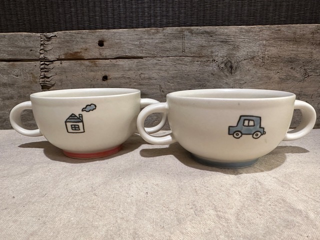 子どもスープマグ 砥部町で営む松田窯さんが作る砥部焼は、和食器ながらも和風すぎないと人気を博しています。 φ9cm H5.5cm 取手ふくむ横幅14cm 食洗機・電子レンジOK