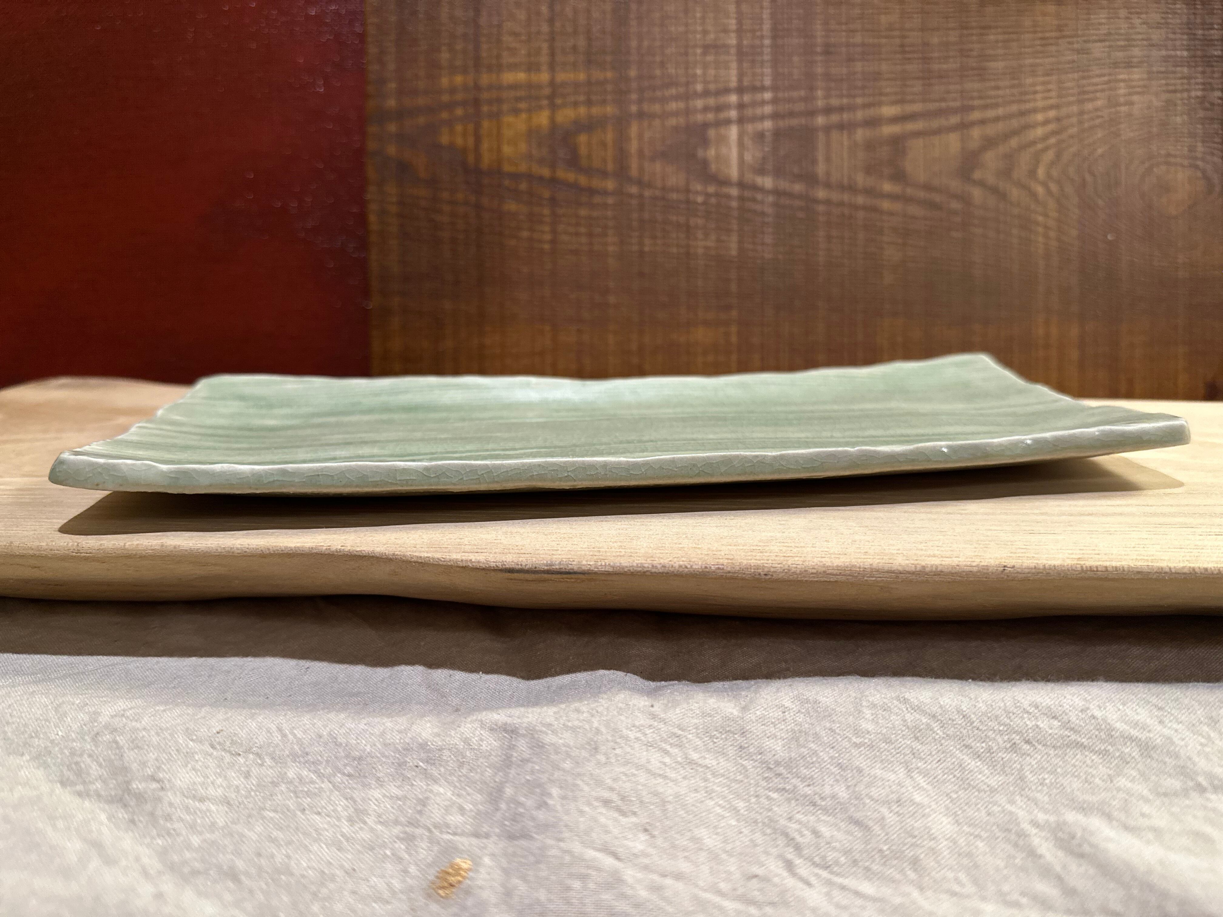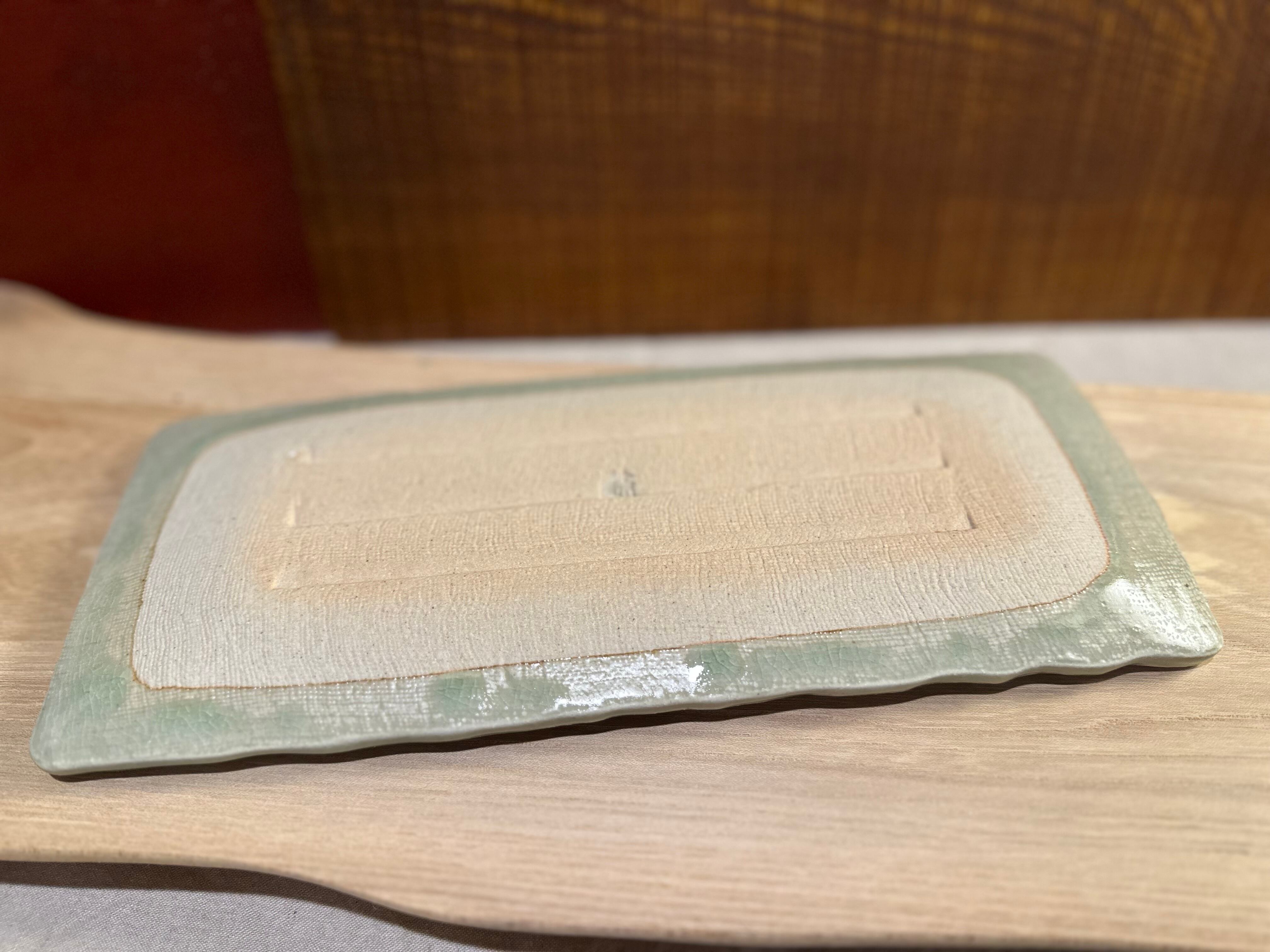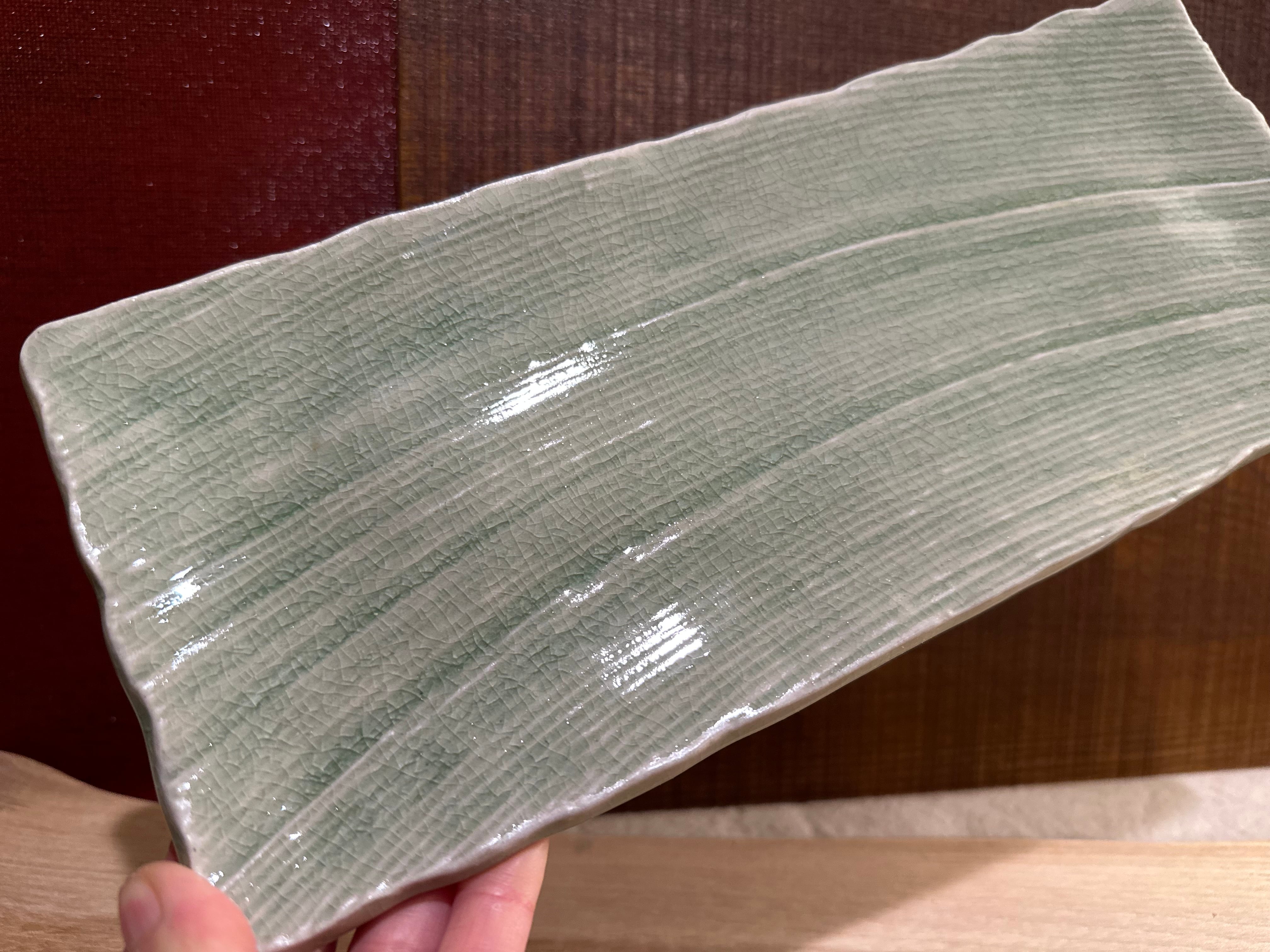 灰釉櫛目彫長皿/瀬戸焼