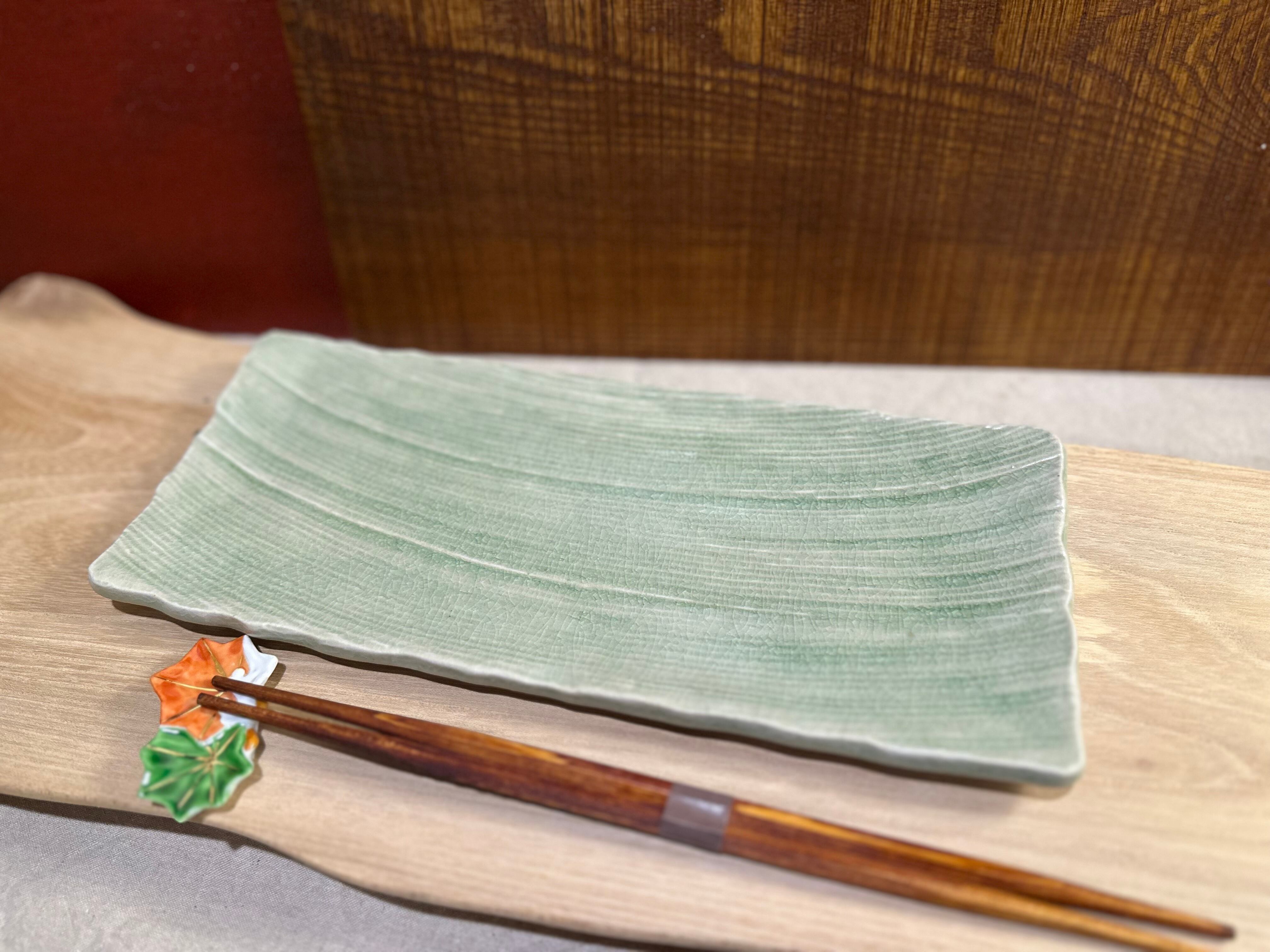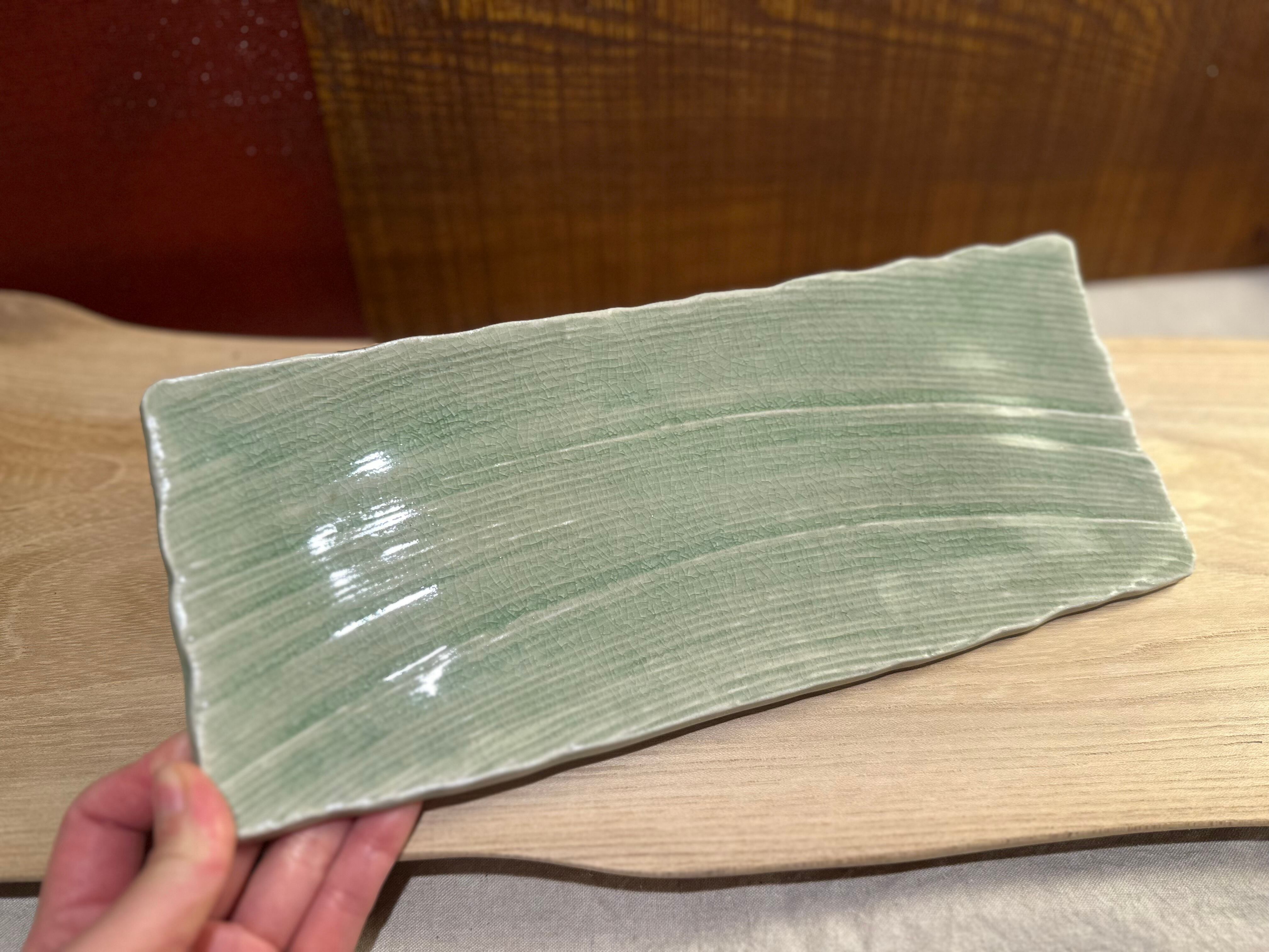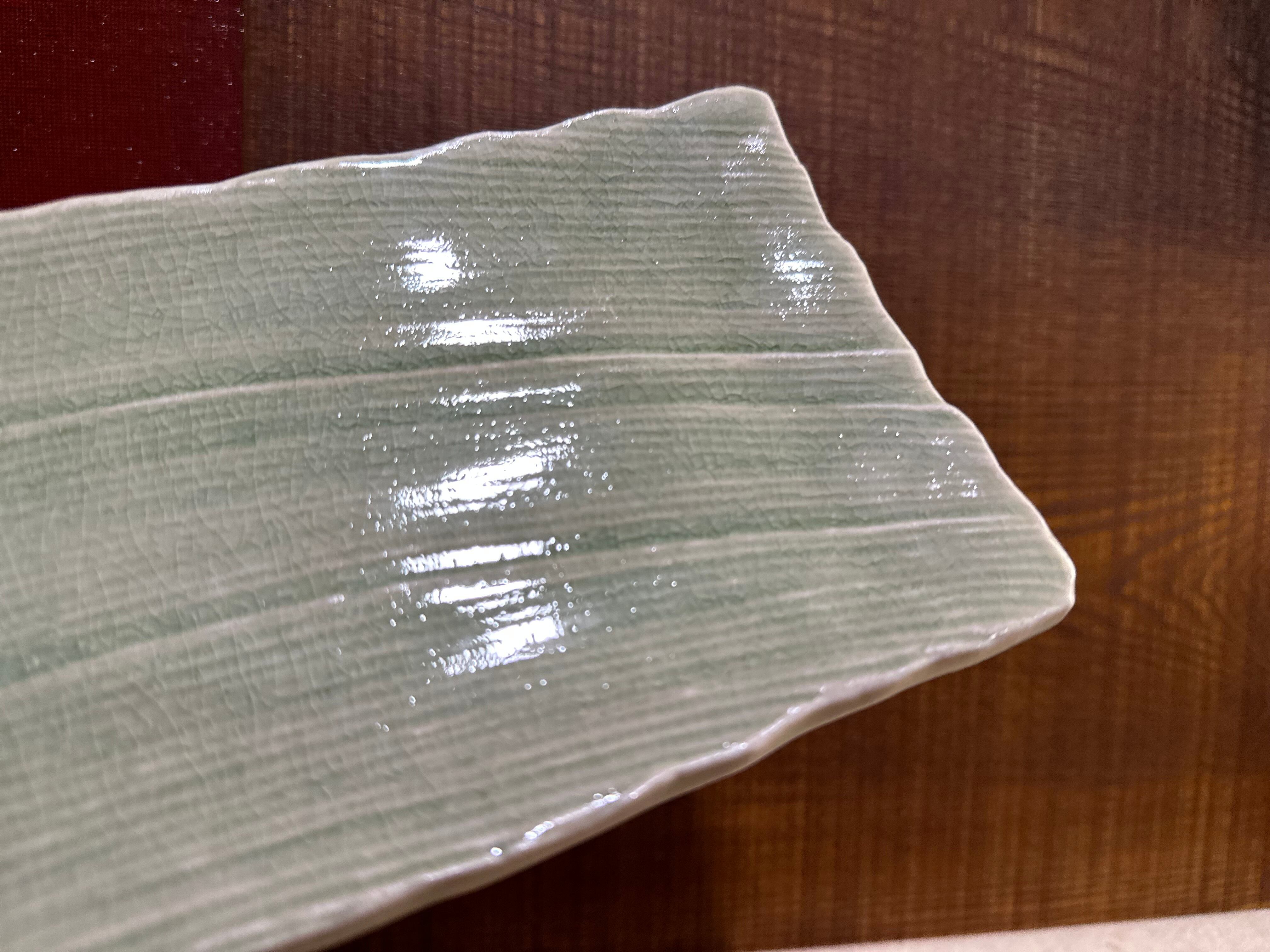 灰釉櫛目彫長皿/瀬戸焼