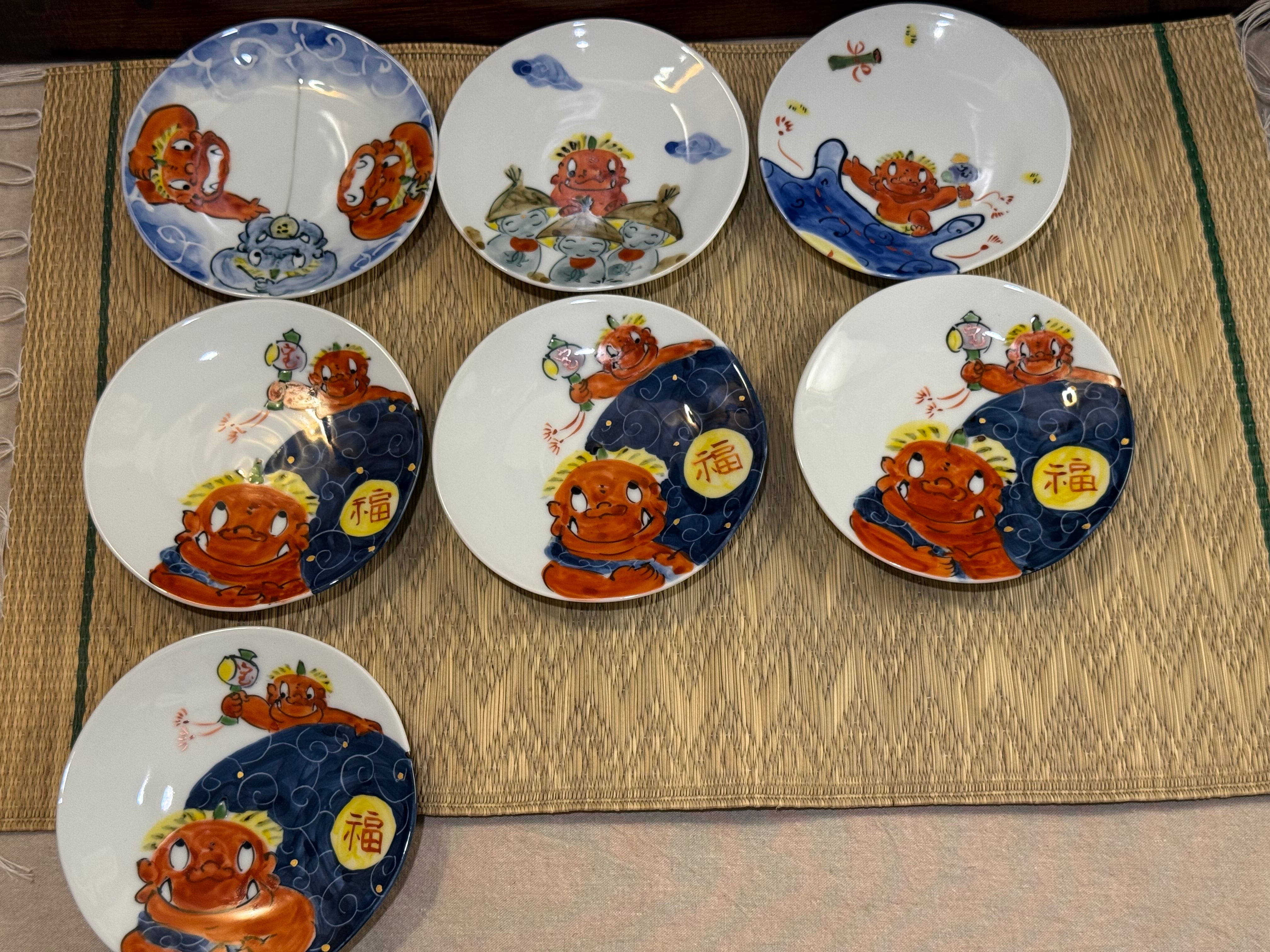 小鬼が遊ぶ様子が全て手描きで描かれており、また鬼が魔除け・厄除けの意味をあらわすありがたいお絵柄となっています。
