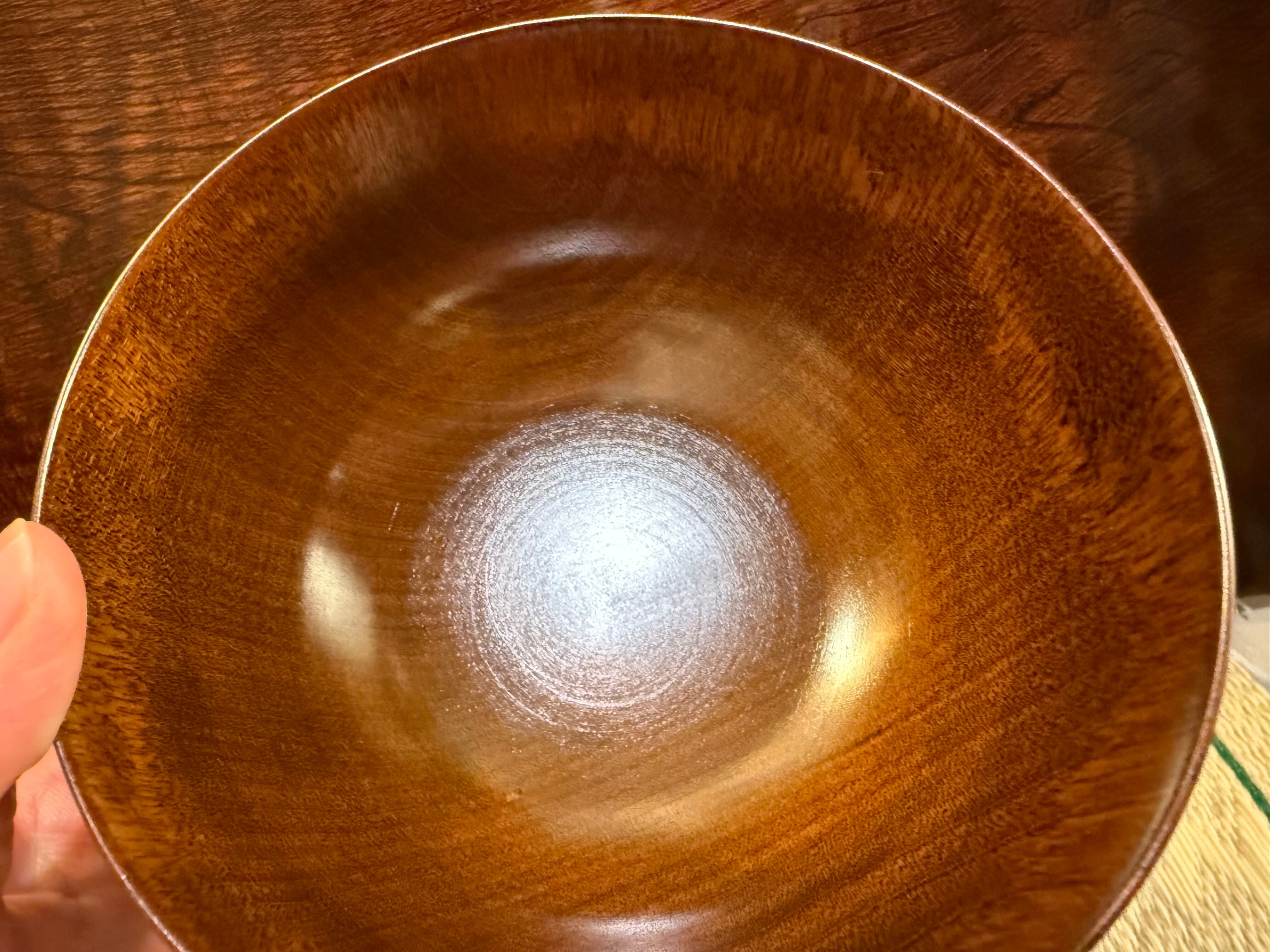 塗りはスリ漆といい、漆を薄く拭き込む様に塗り固めます。うっすらと木目が透ける様は、漆器をカジュアルに見せてくれます。