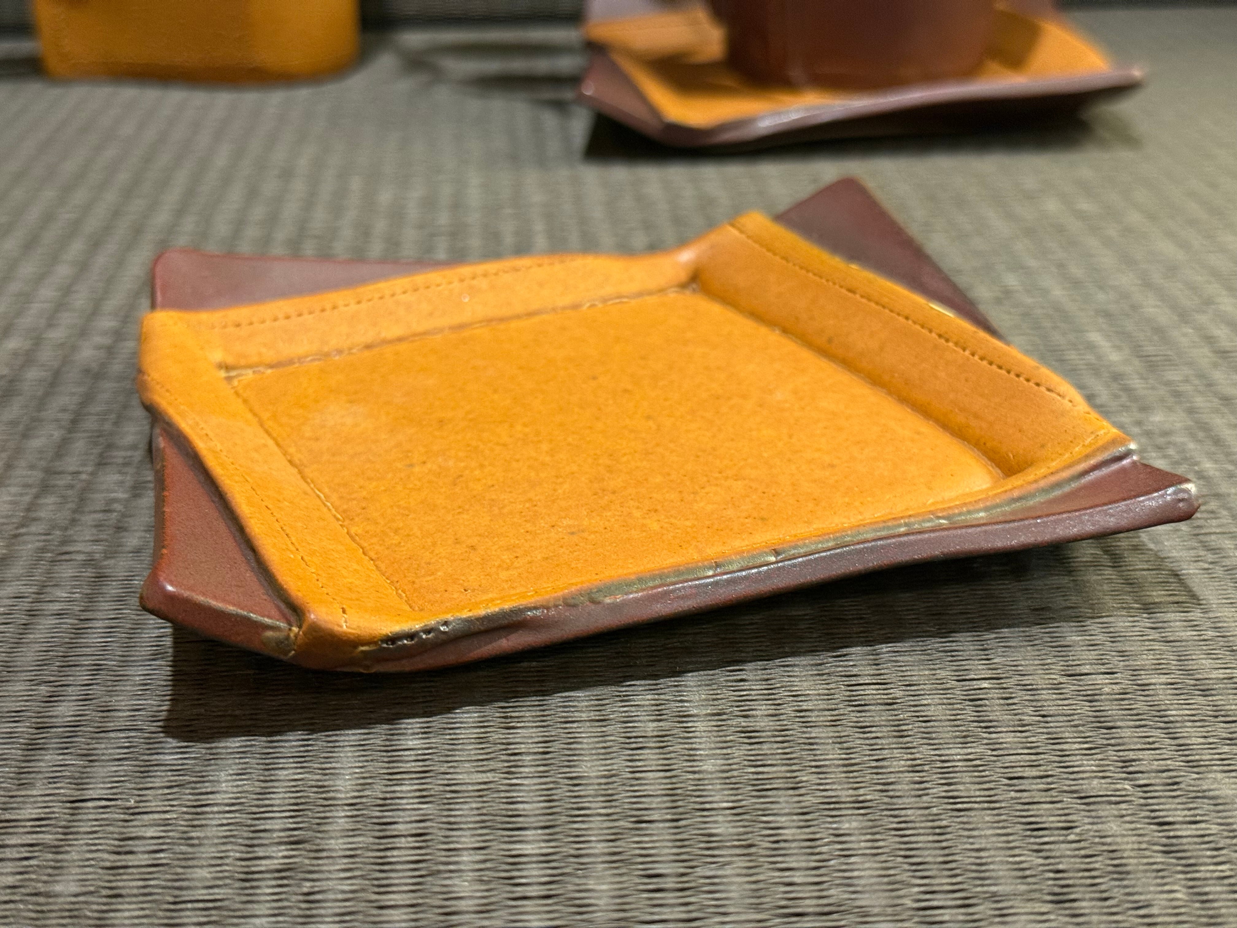 陶芸(釉薬)技法のひとつ、カイラギという釉薬の縮れを応用し極限までレザー感を高めていった驚きの作品です。