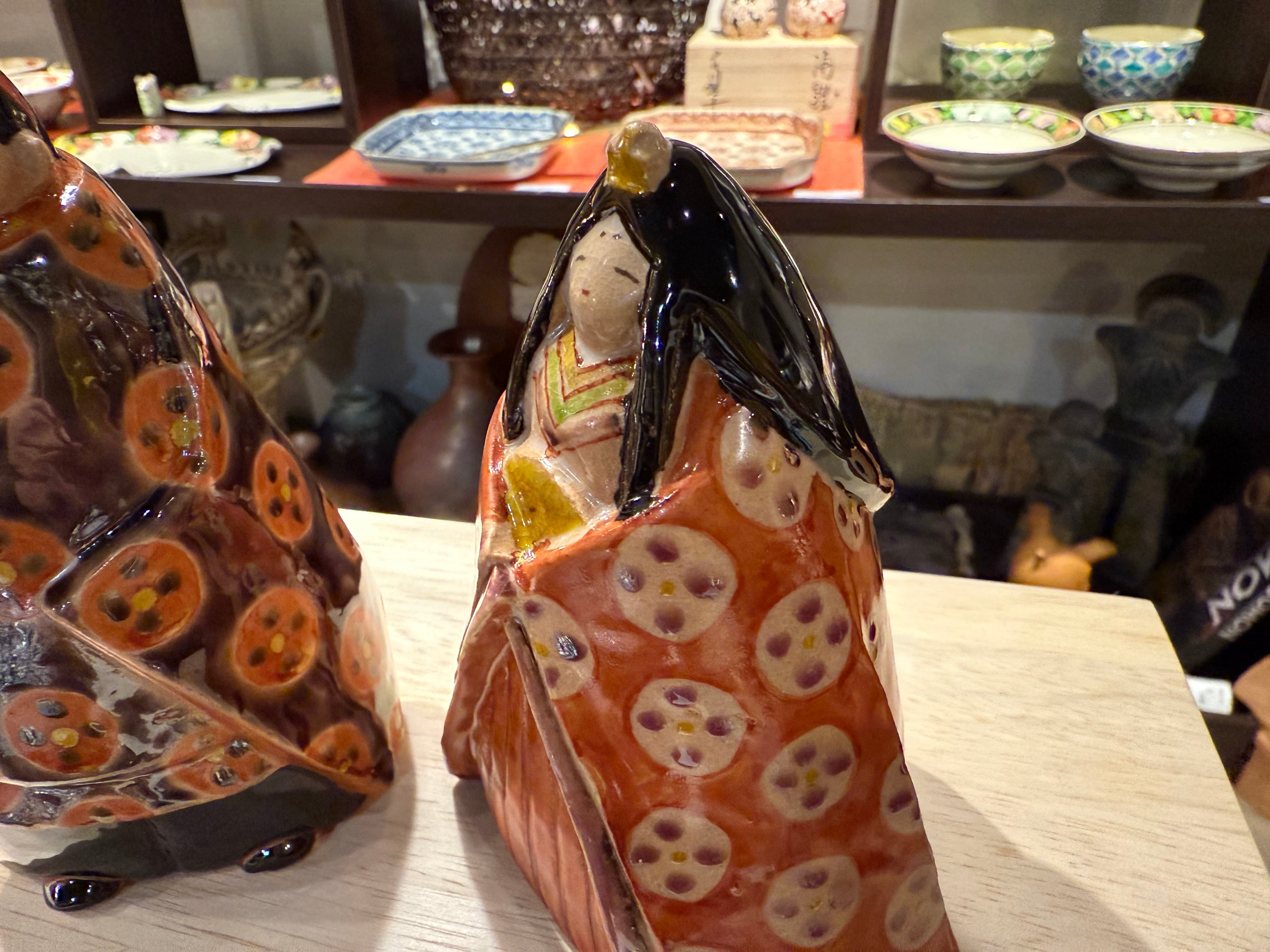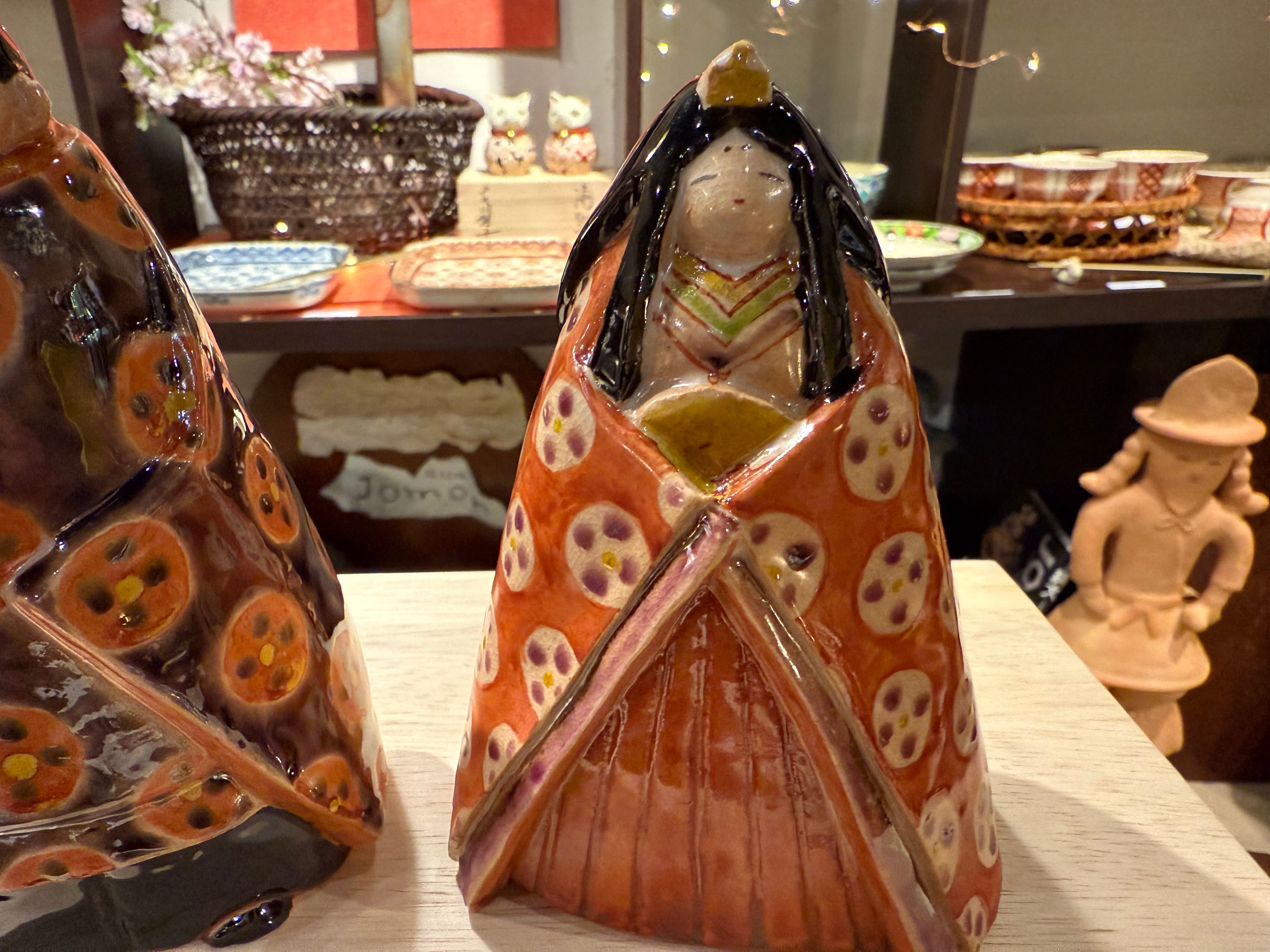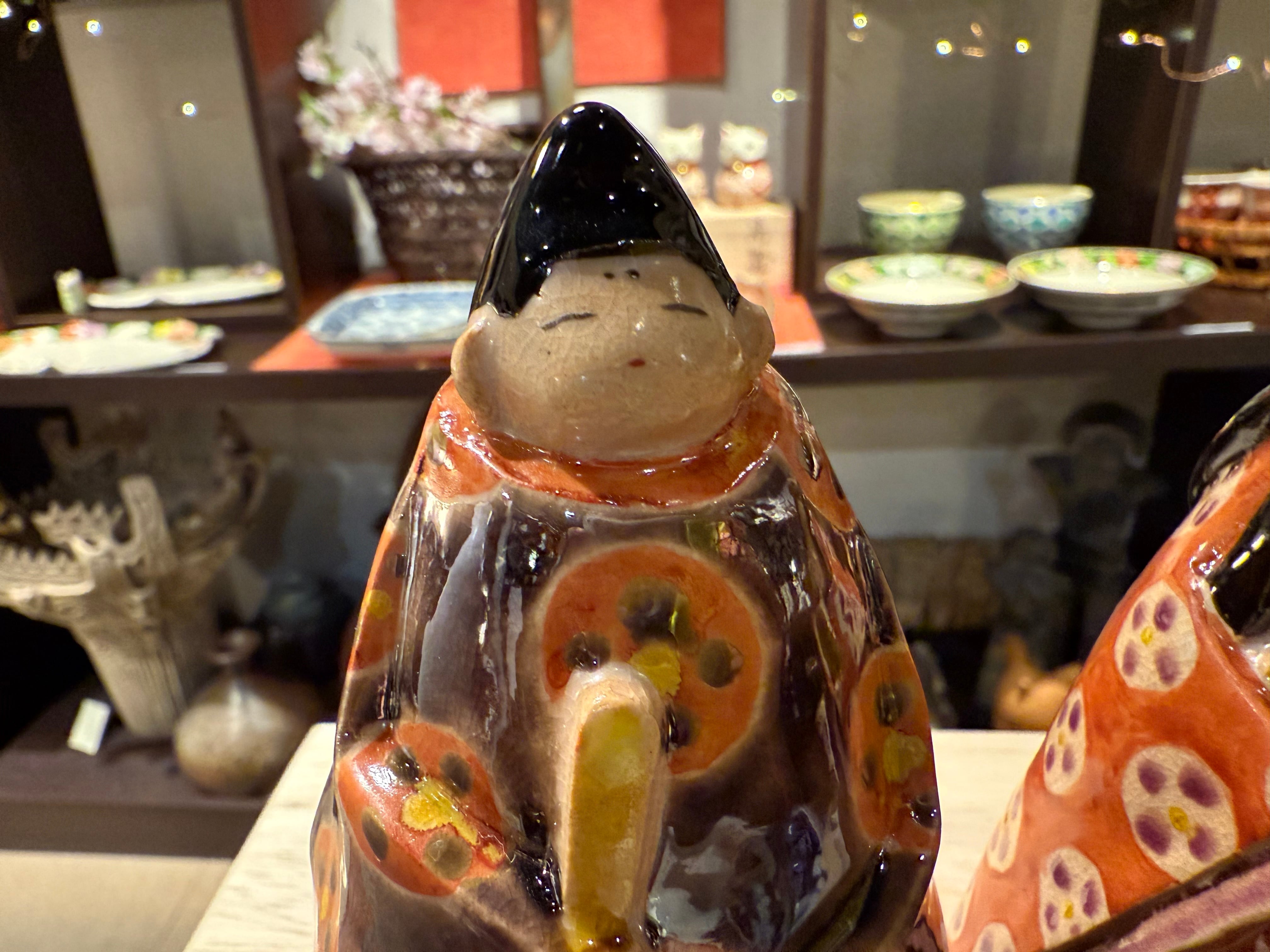 愛らしい表情に華やかな衣装着人形の陶雛です。