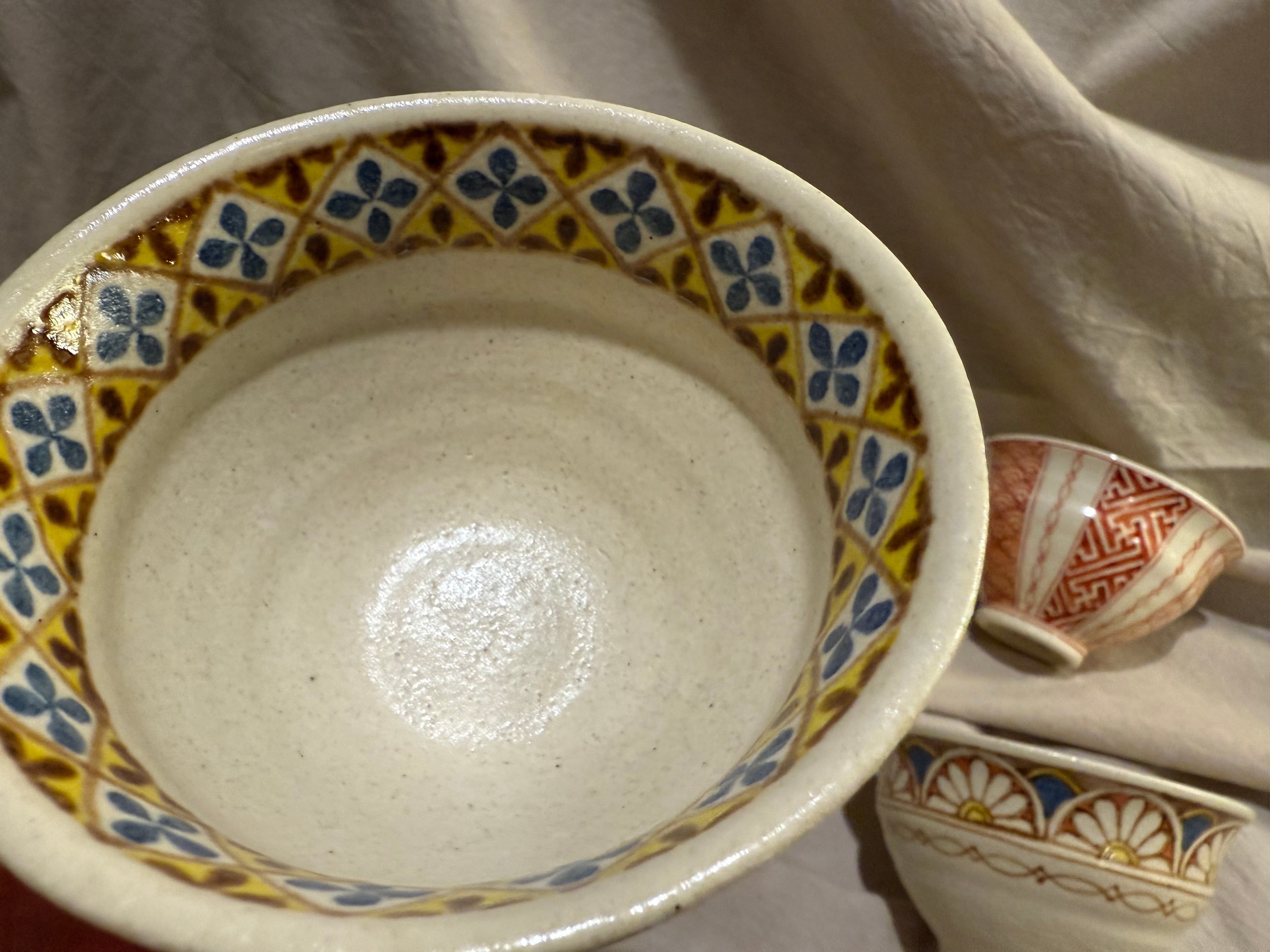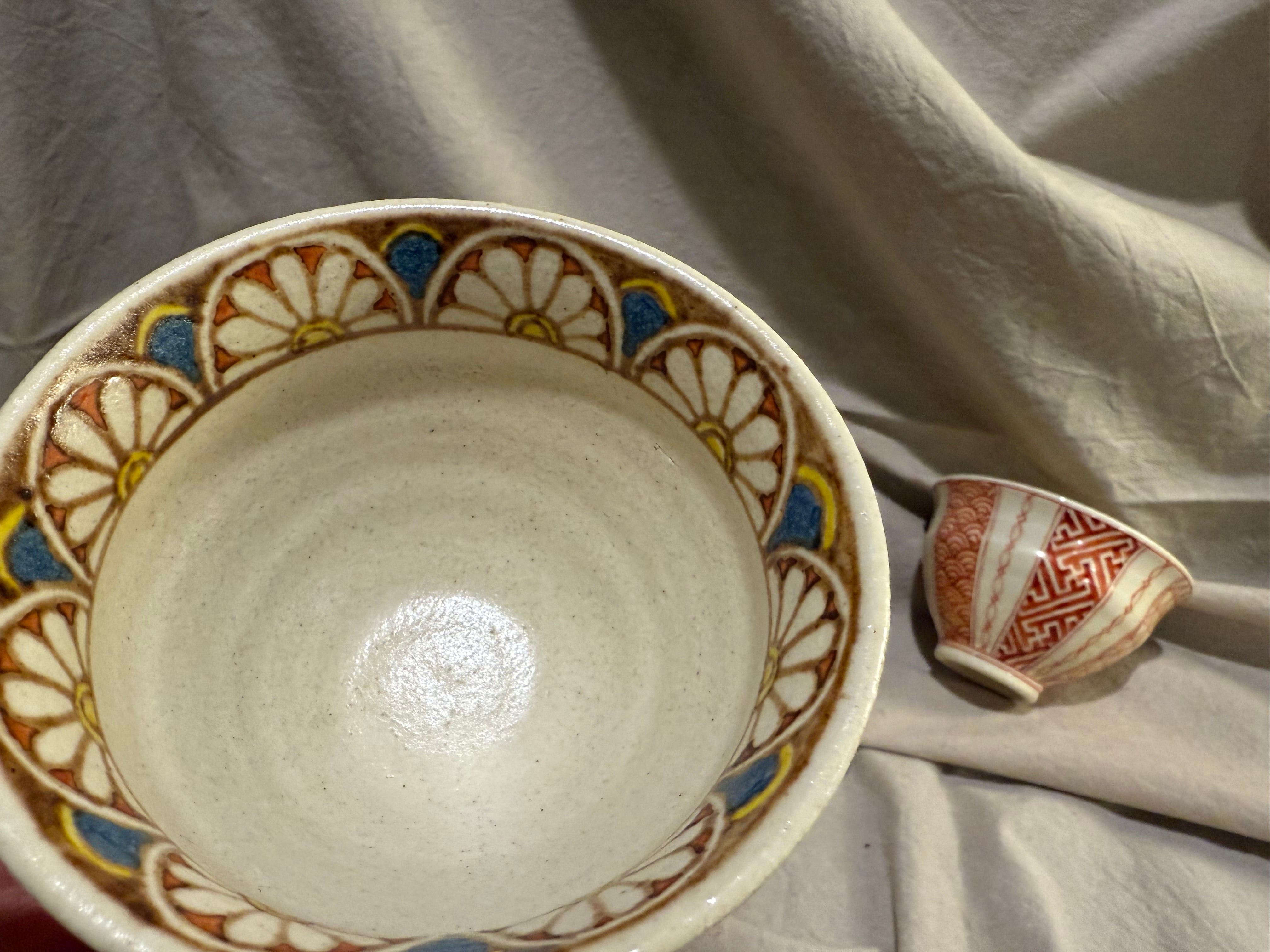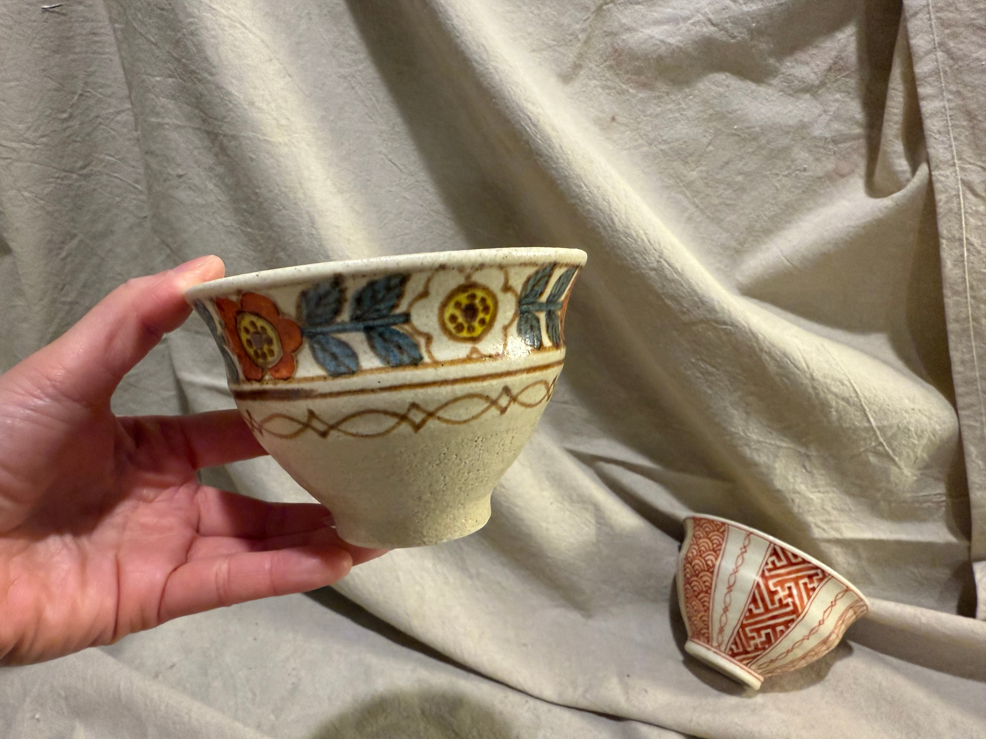 懐かしさを覚える土の雰囲気にレトロ調の花模様が良いアクセントです。