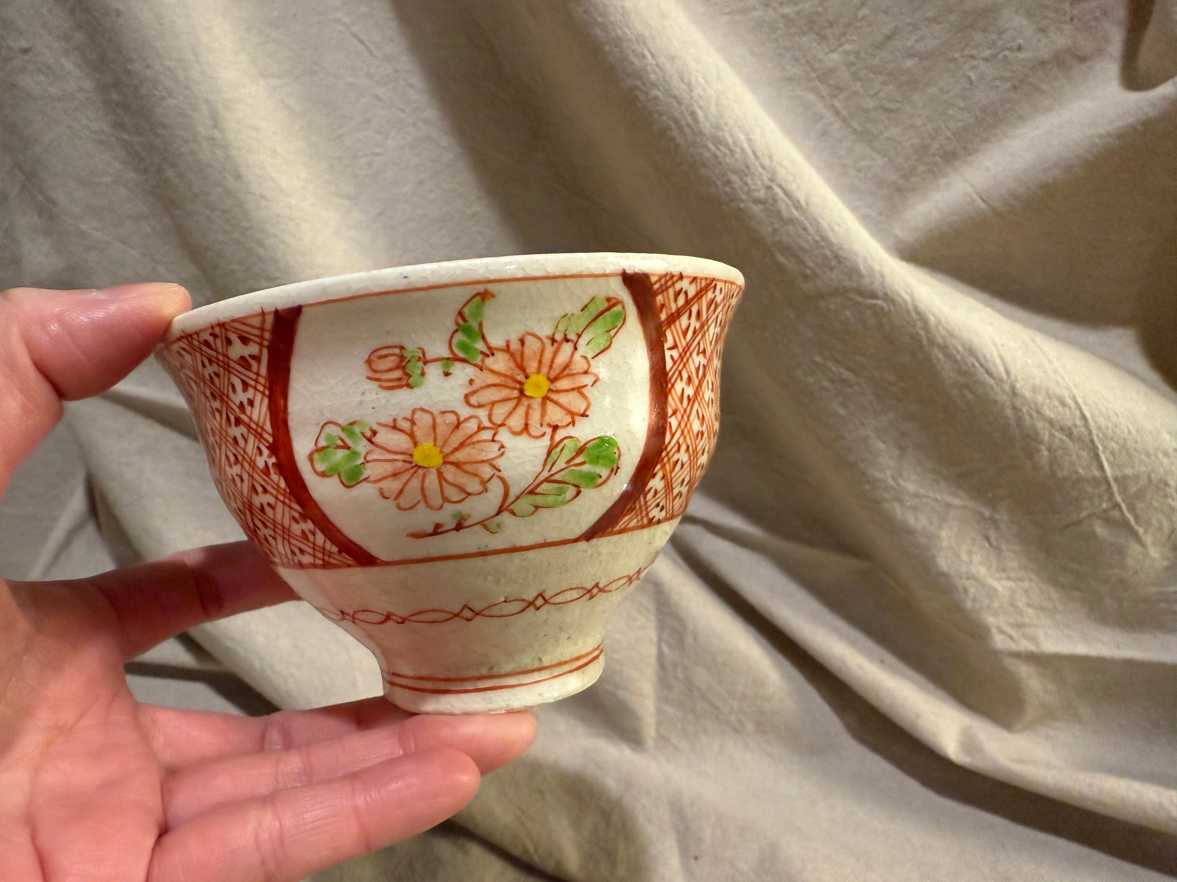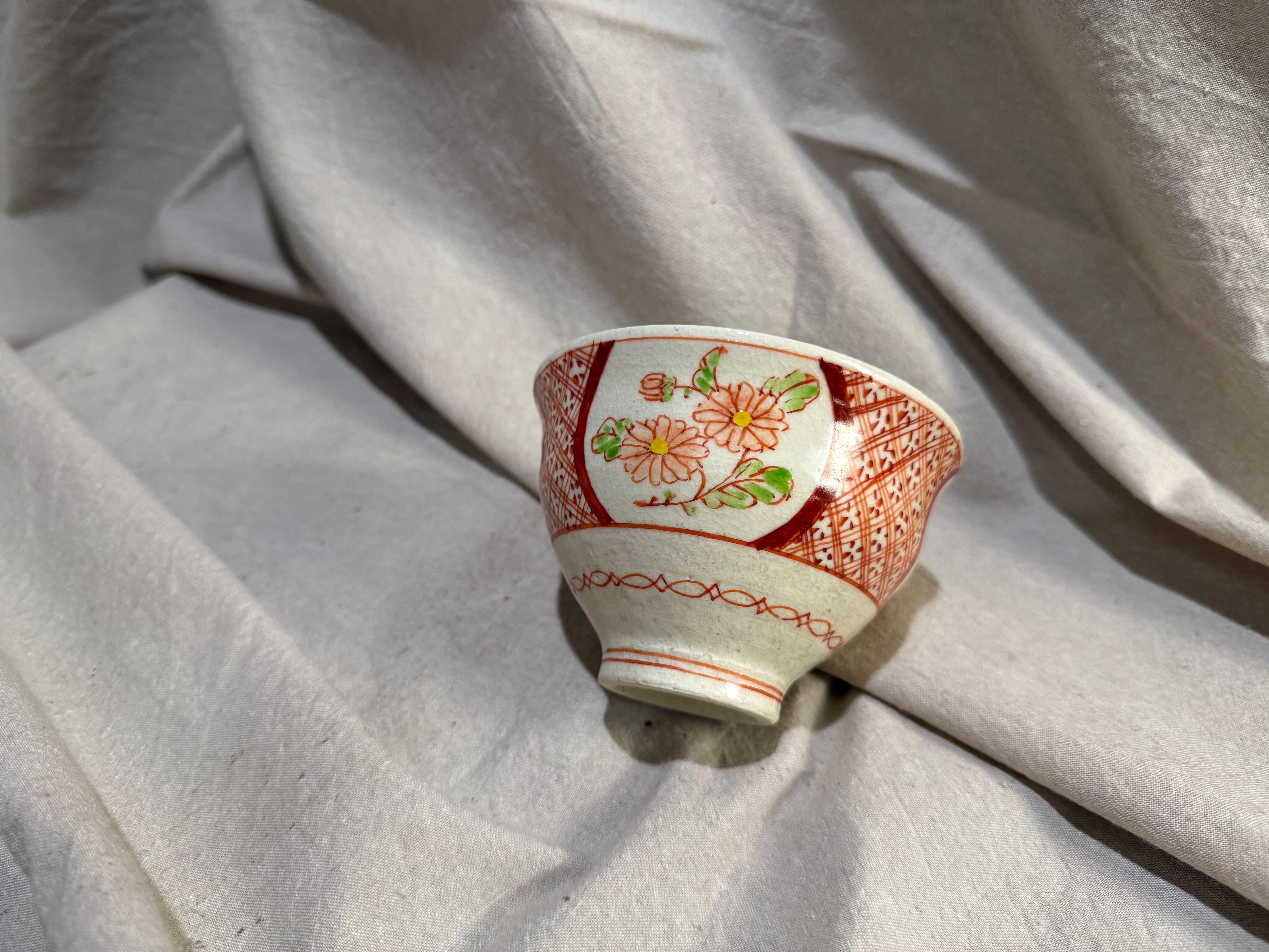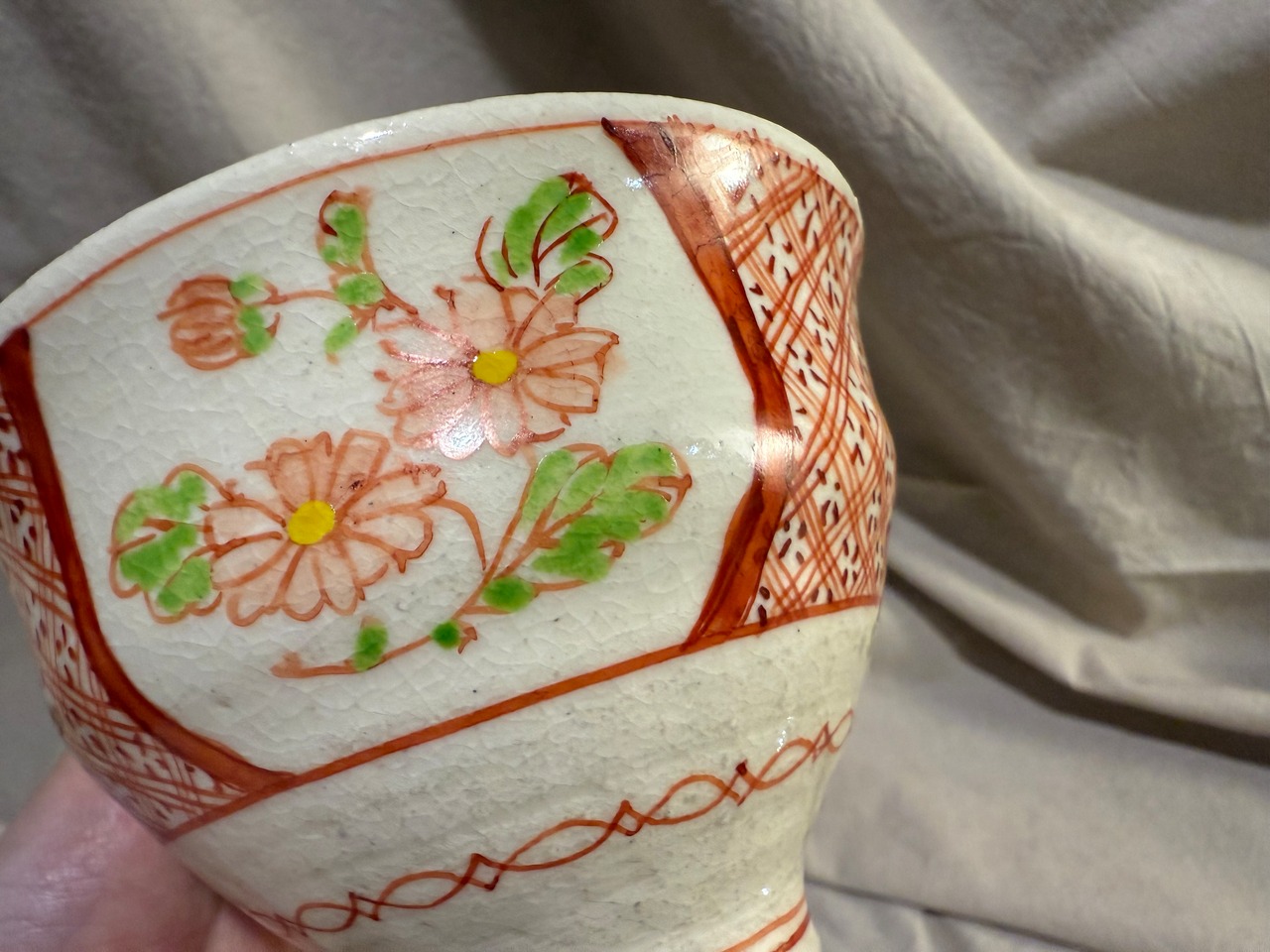 懐かしさを覚える土の素朴さに、古典的ながらモダンな小紋×窓絵の花紋が、食卓に手仕事の華を添えます。