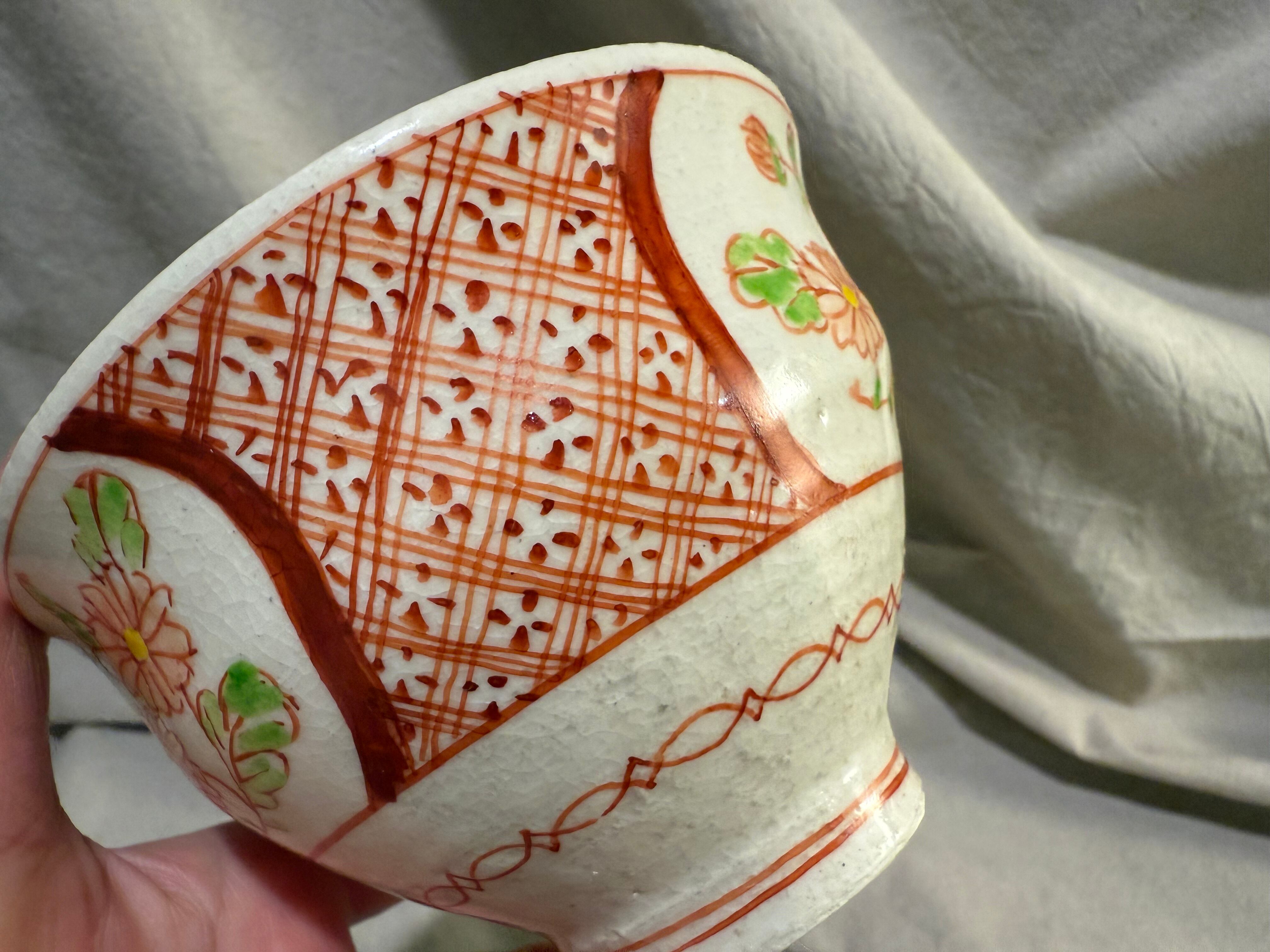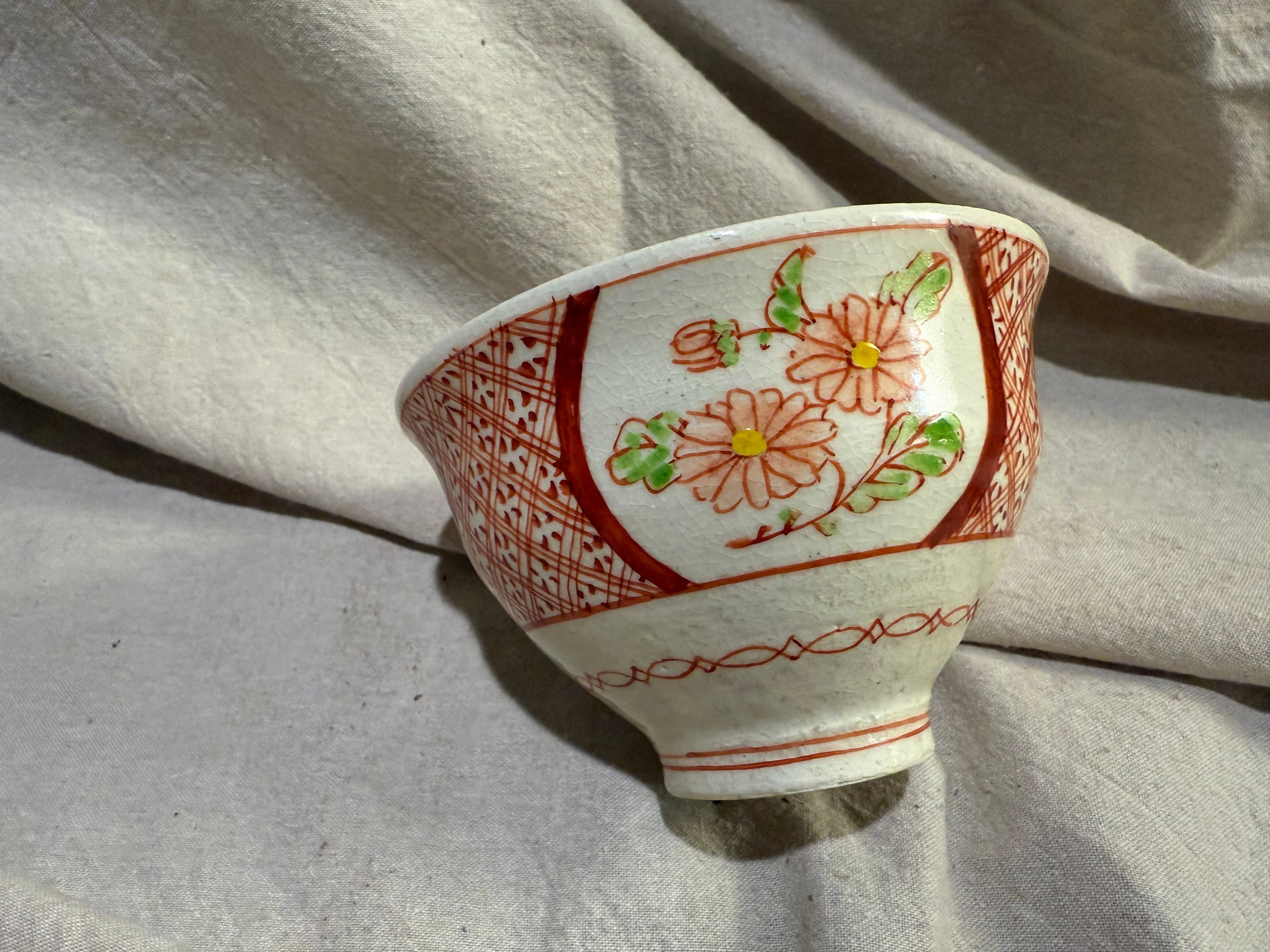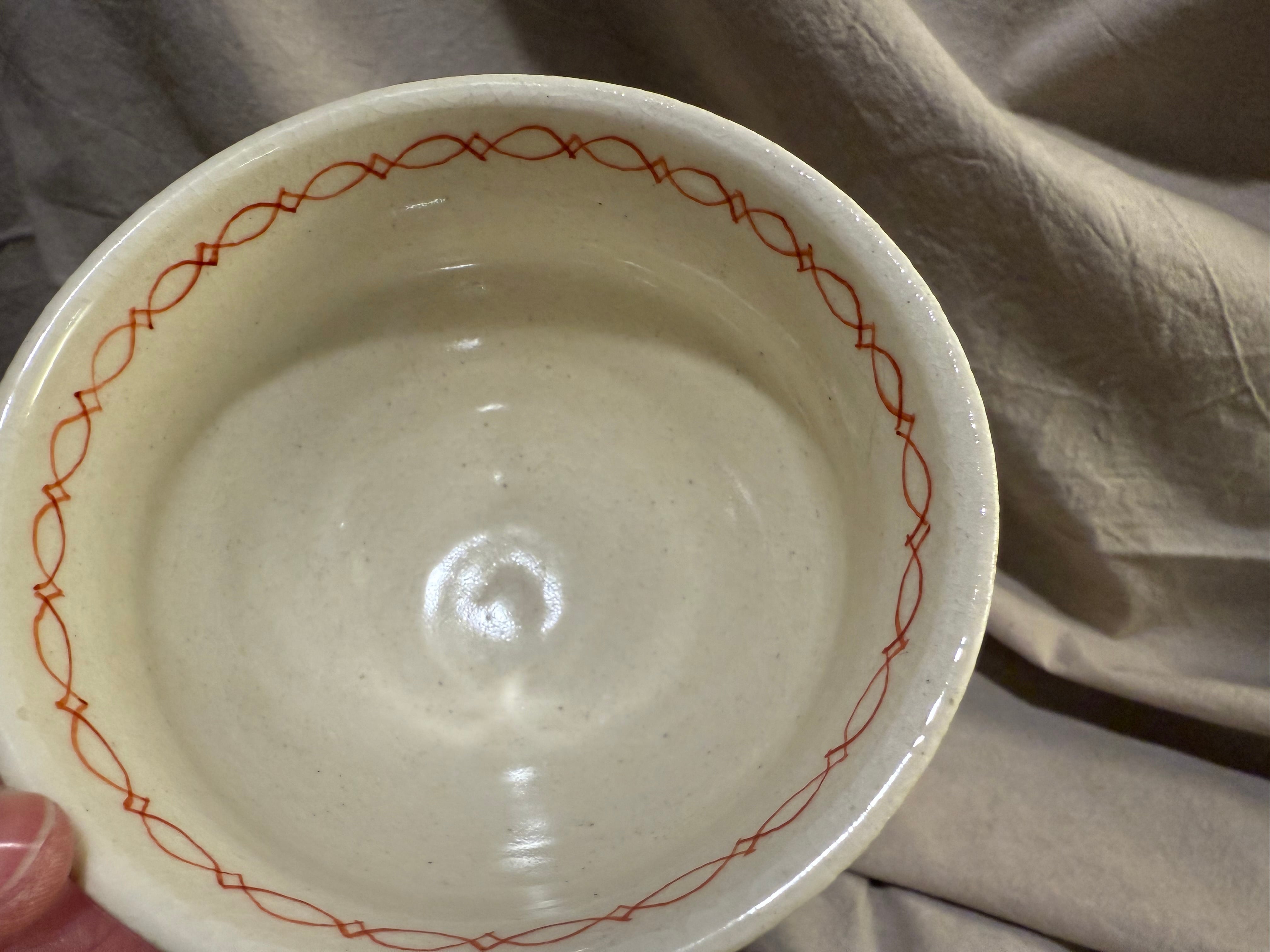 懐かしさを覚える土の素朴さに、古典的ながらモダンな小紋×窓絵の花紋が、食卓に手仕事の華を添えます。
