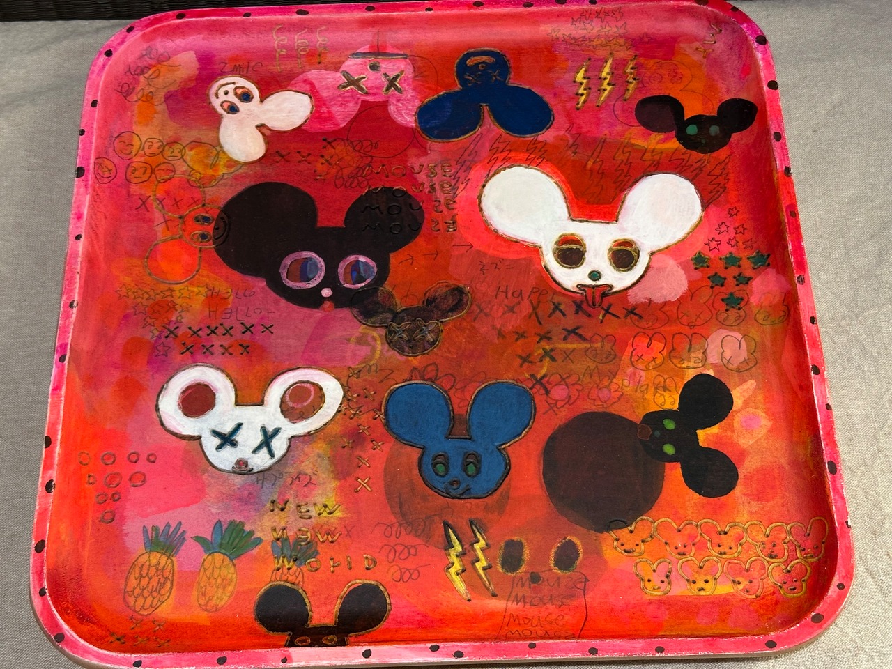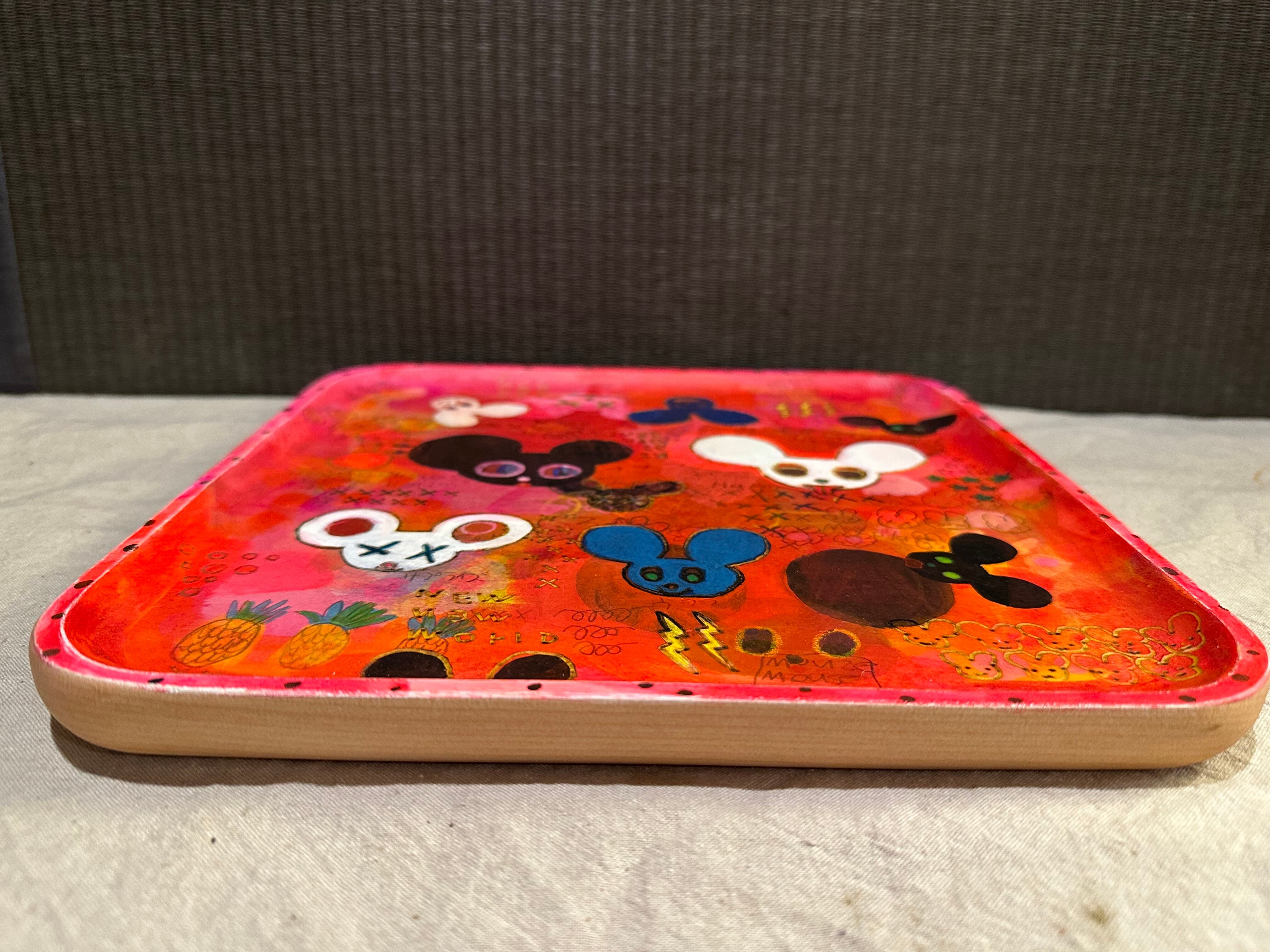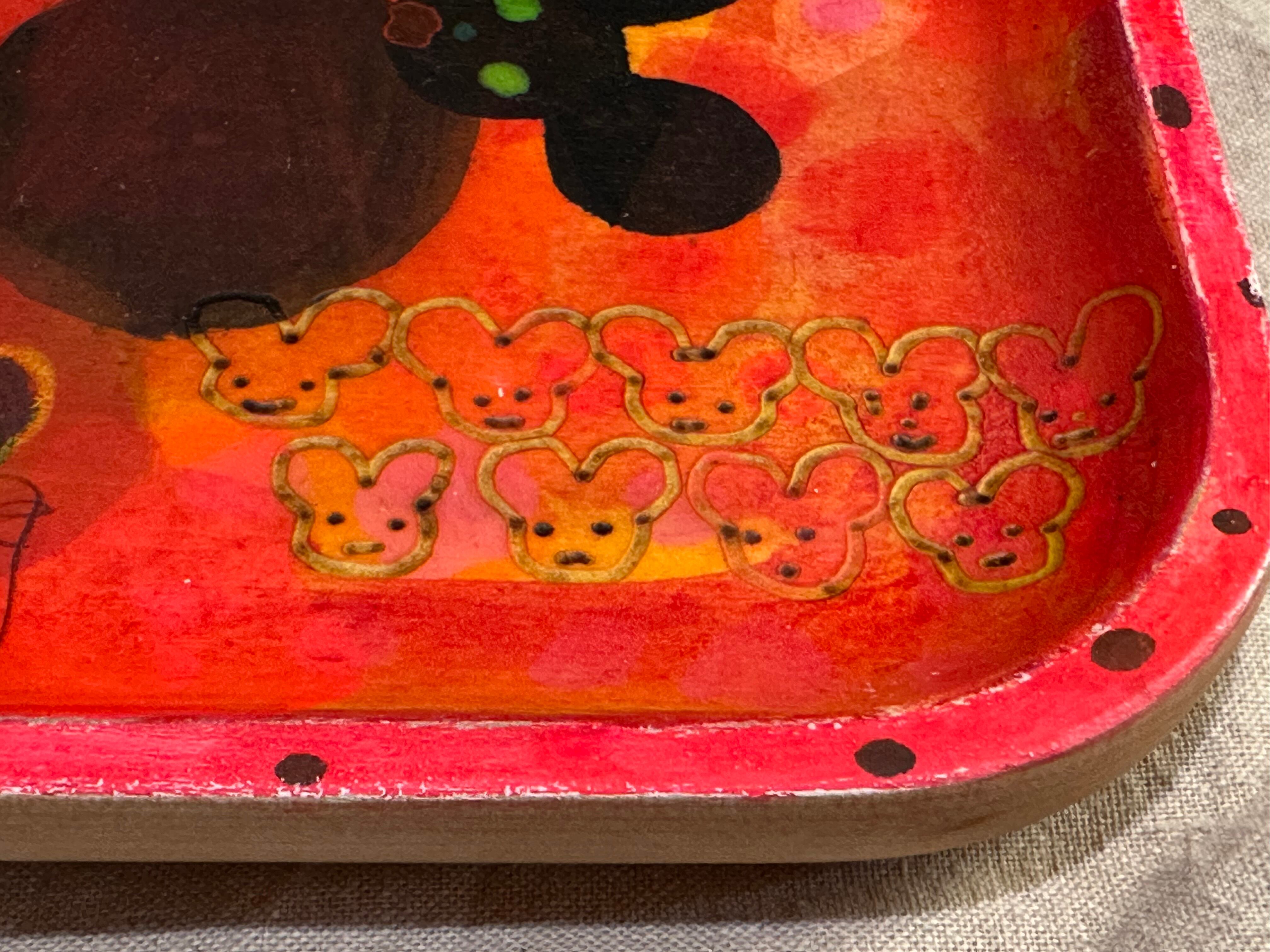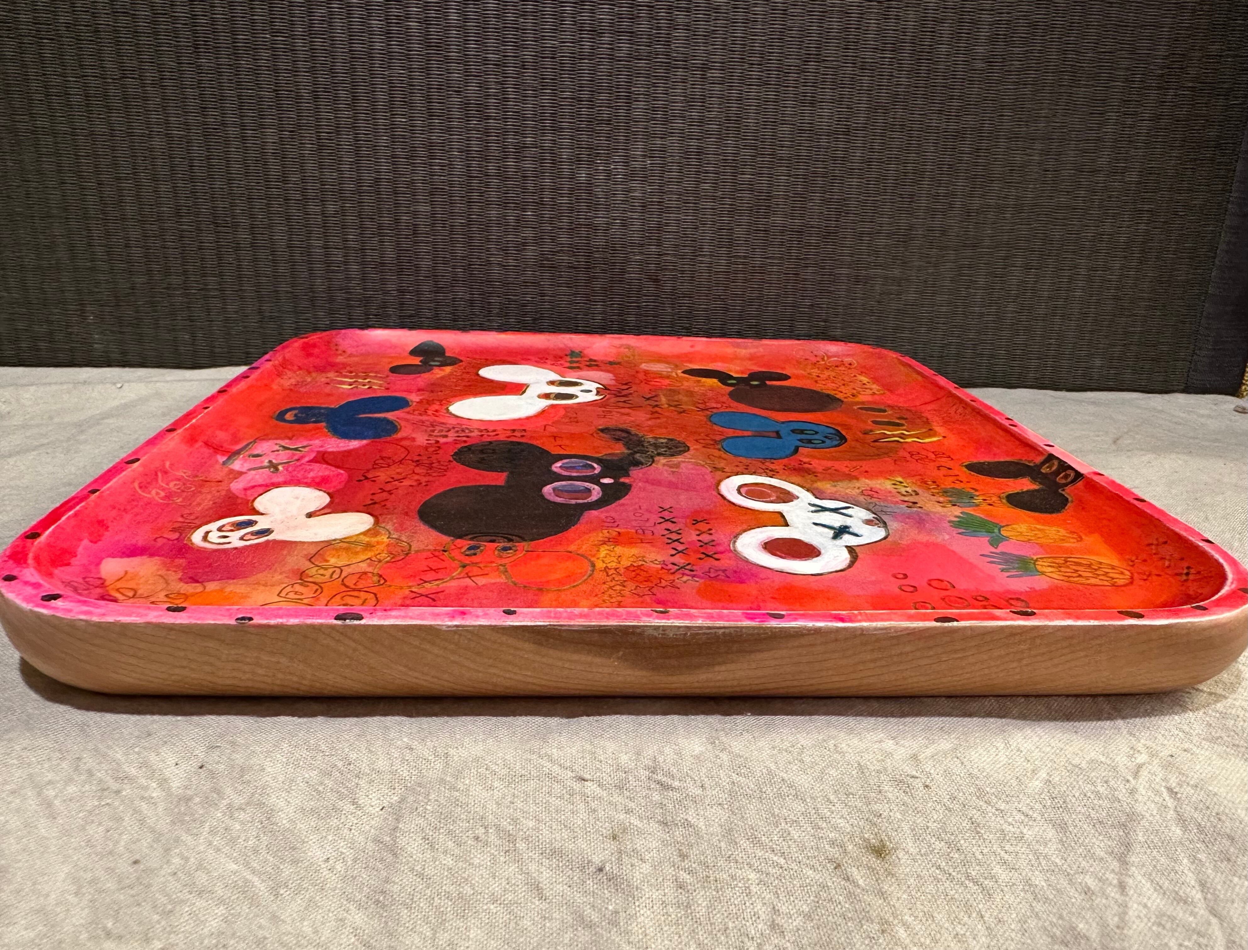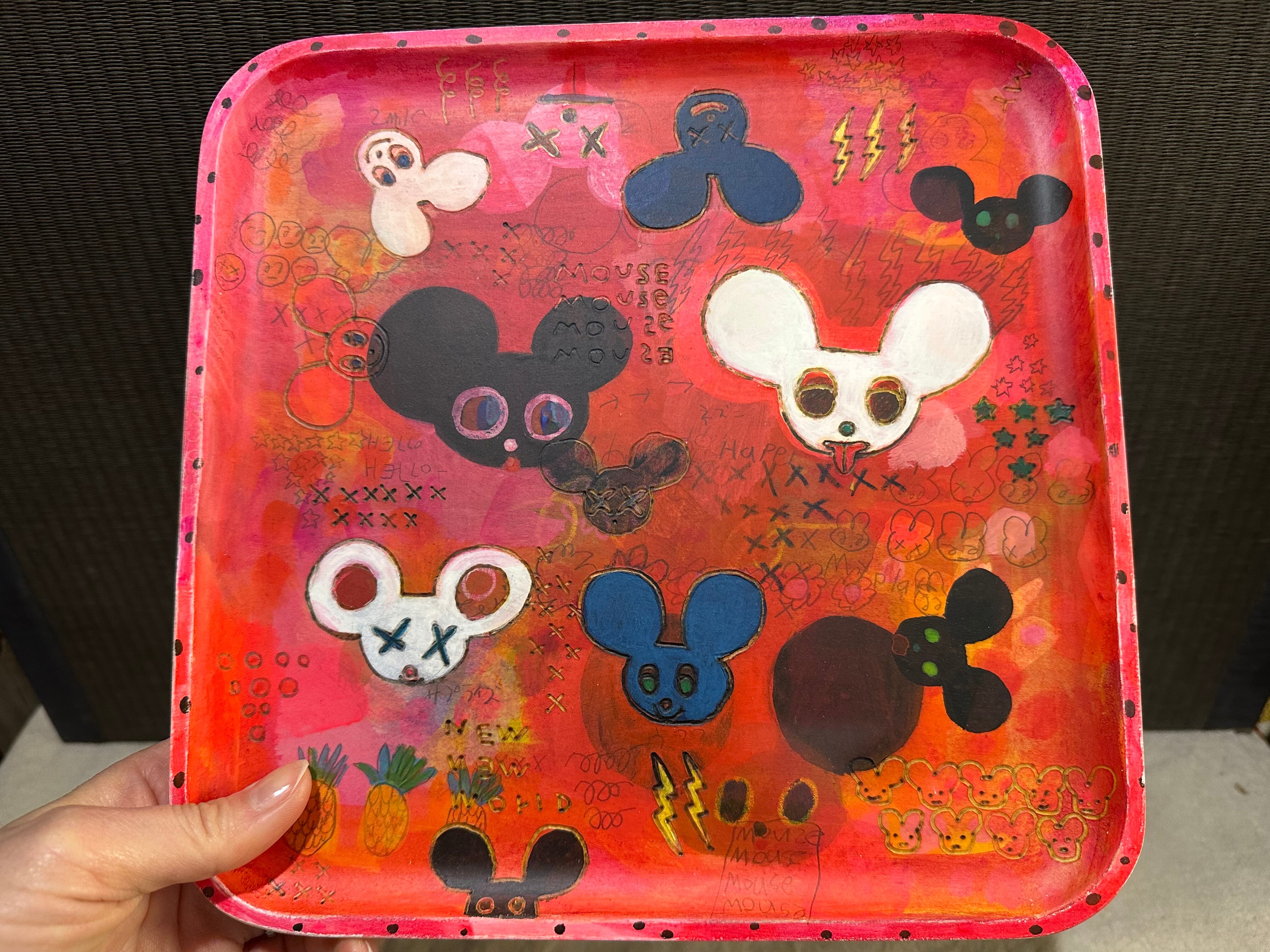 木の第二の人生を、食器としてより長く使ってもらいたいと、バーニング(焼き付け)や染色等を用いて大胆に絵付けを施し、樹脂コーティングで仕上げられています。