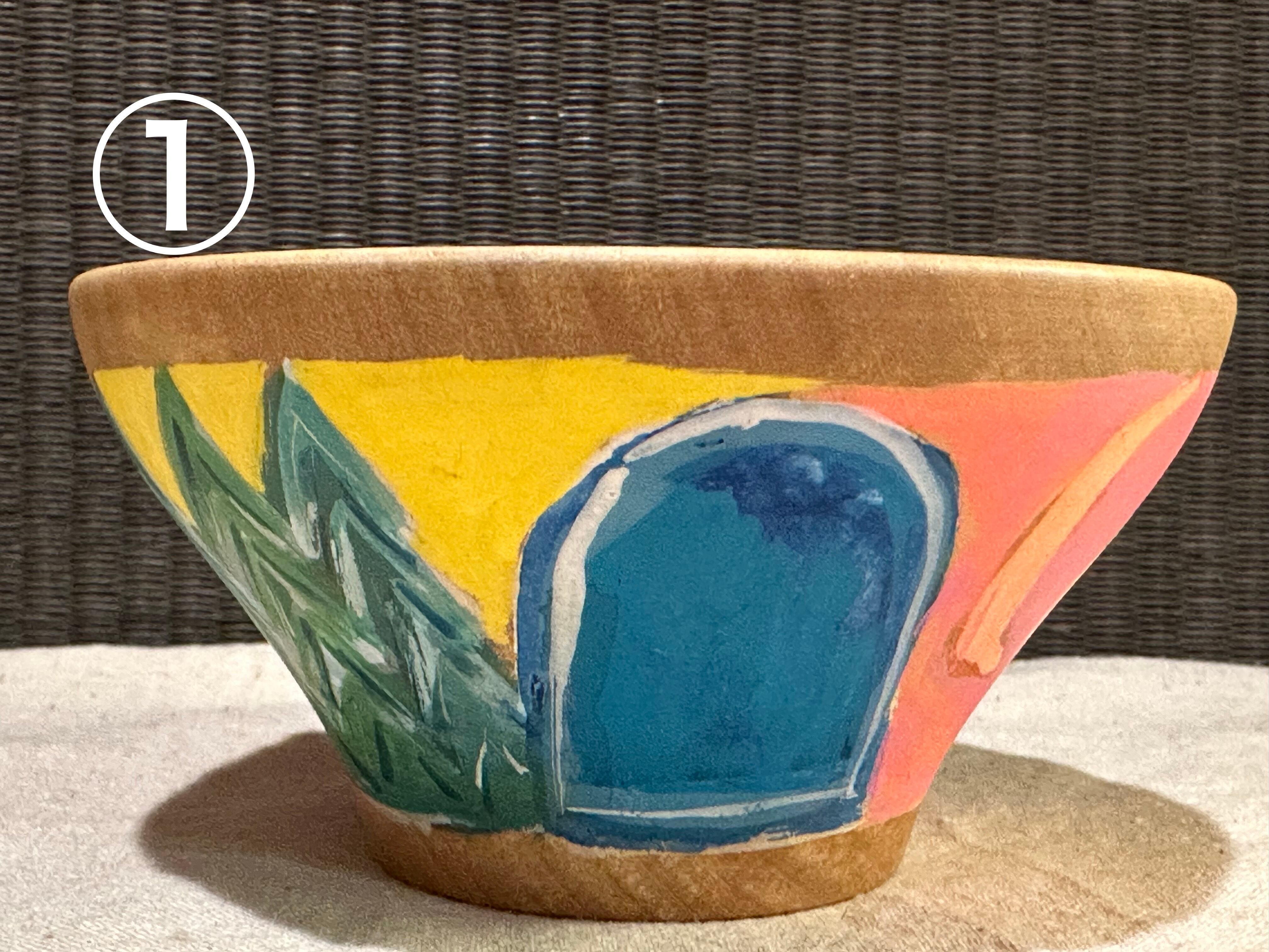 木の第二の人生を、食器としてより長く使ってもらいたいと、バーニング(焼き付け)や染色等を用いて大胆に絵付けを施し、樹脂コーティングで仕上げられています。