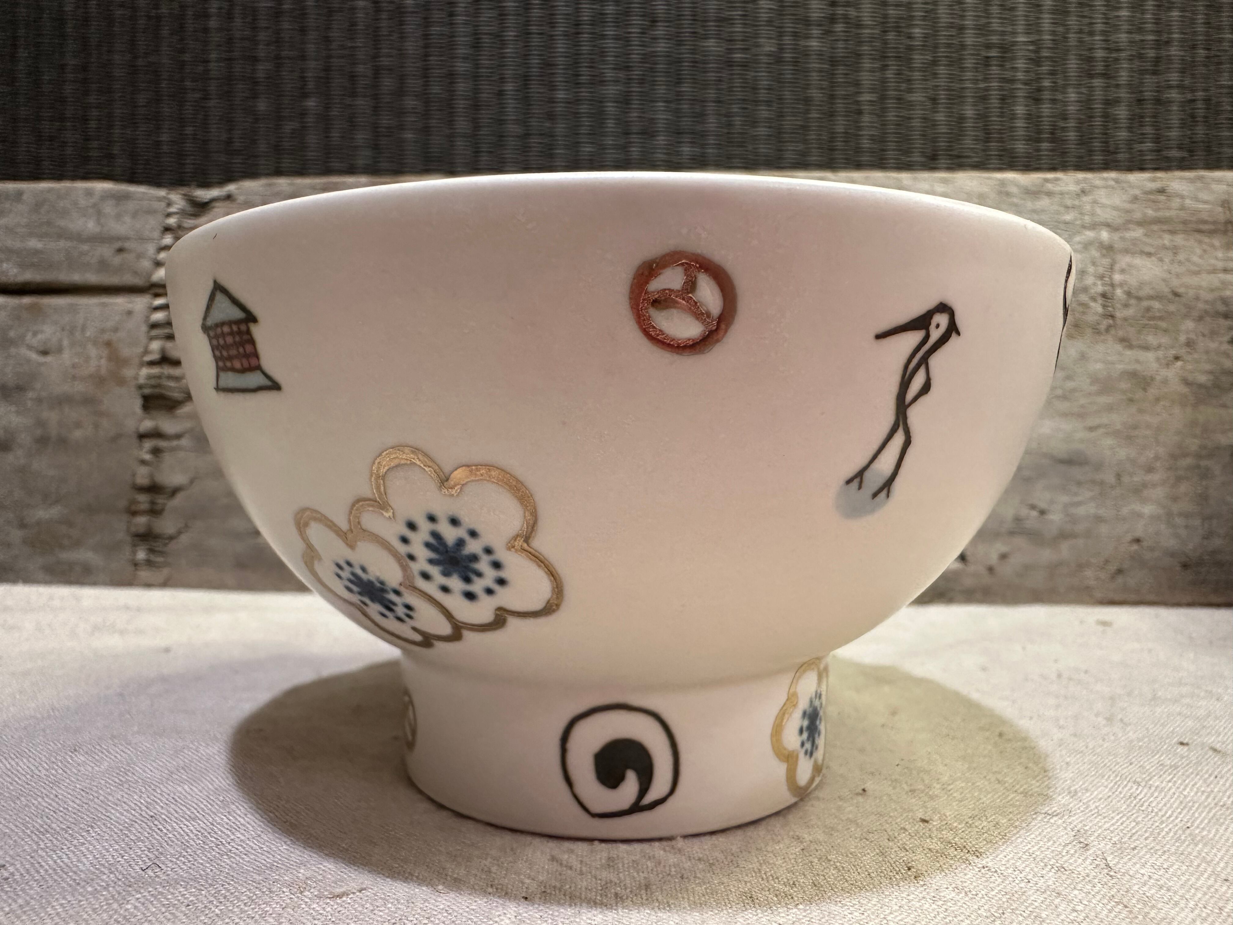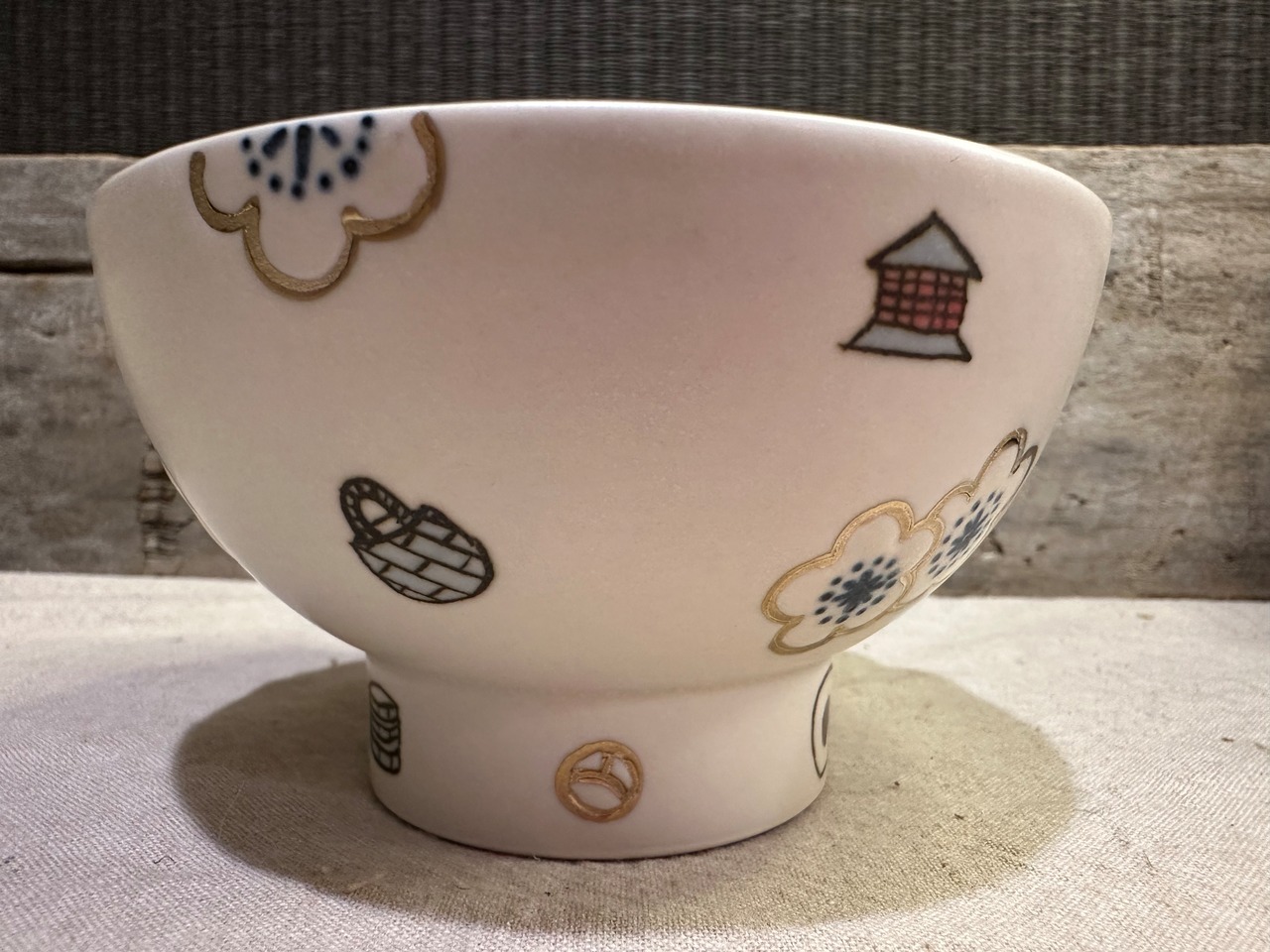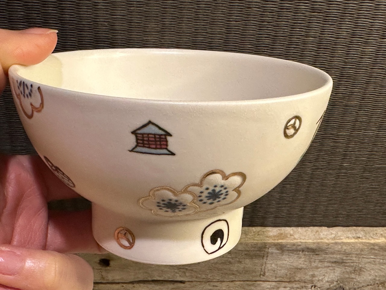 くらわんかとは高台の大きなお碗(飯碗)のことで、愛媛県や長崎県(波佐見焼)で作られていました。船の上で使う安定感の良い形…というイメージが強く、ご飯に限らずおかずや汁物を入れて使ったそうでした。