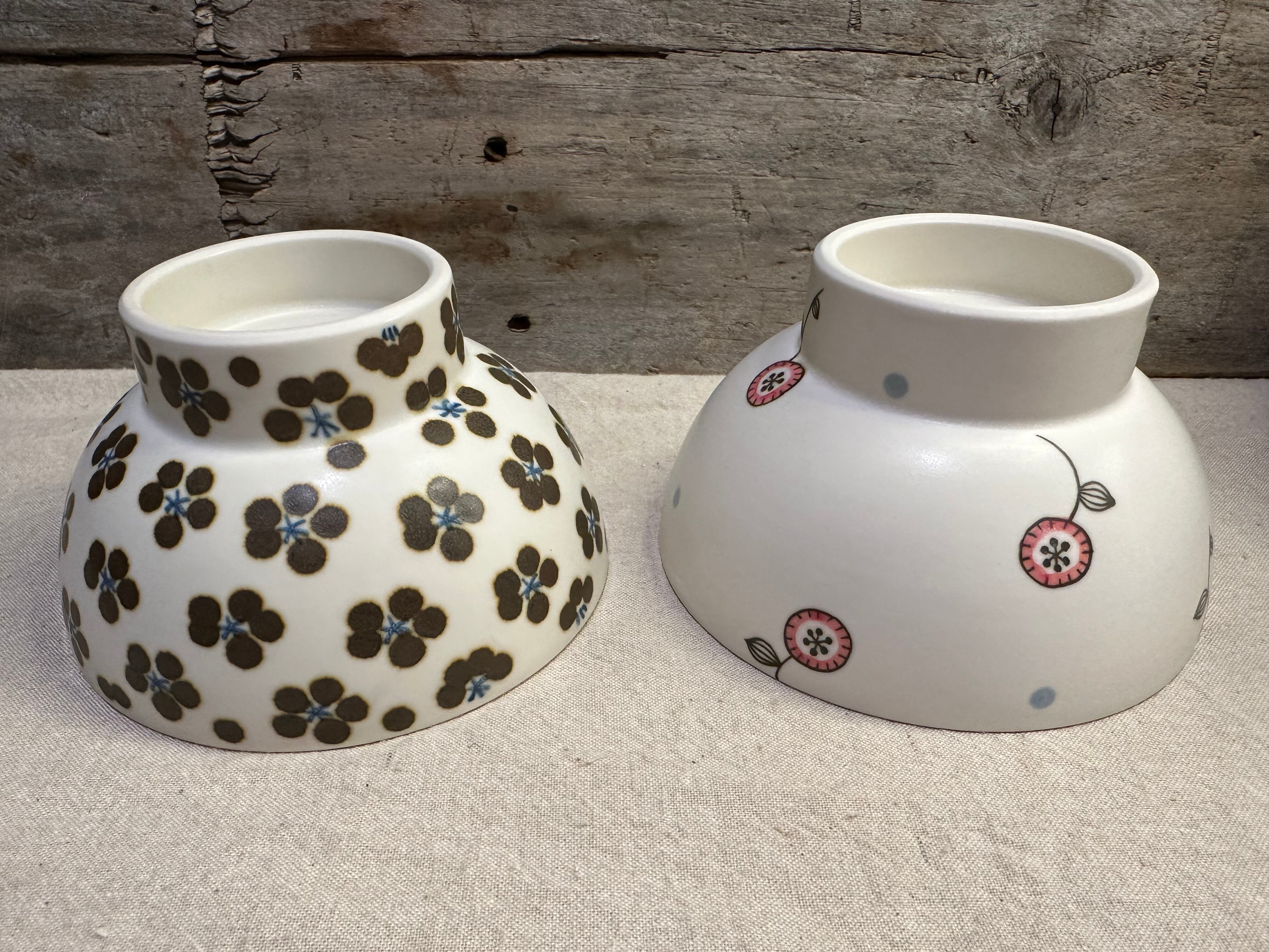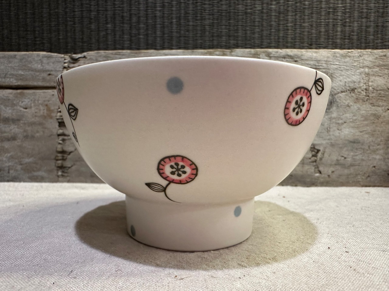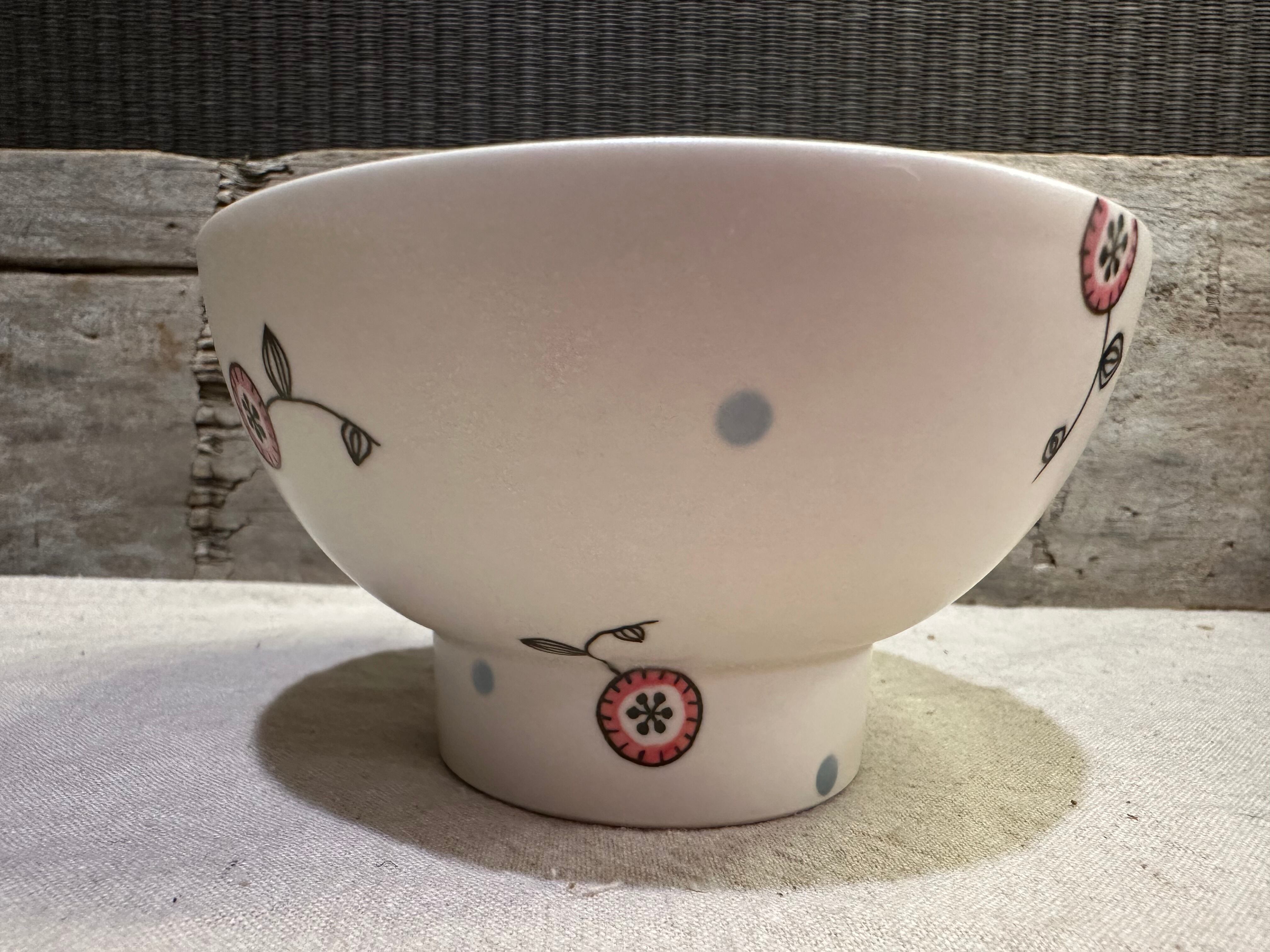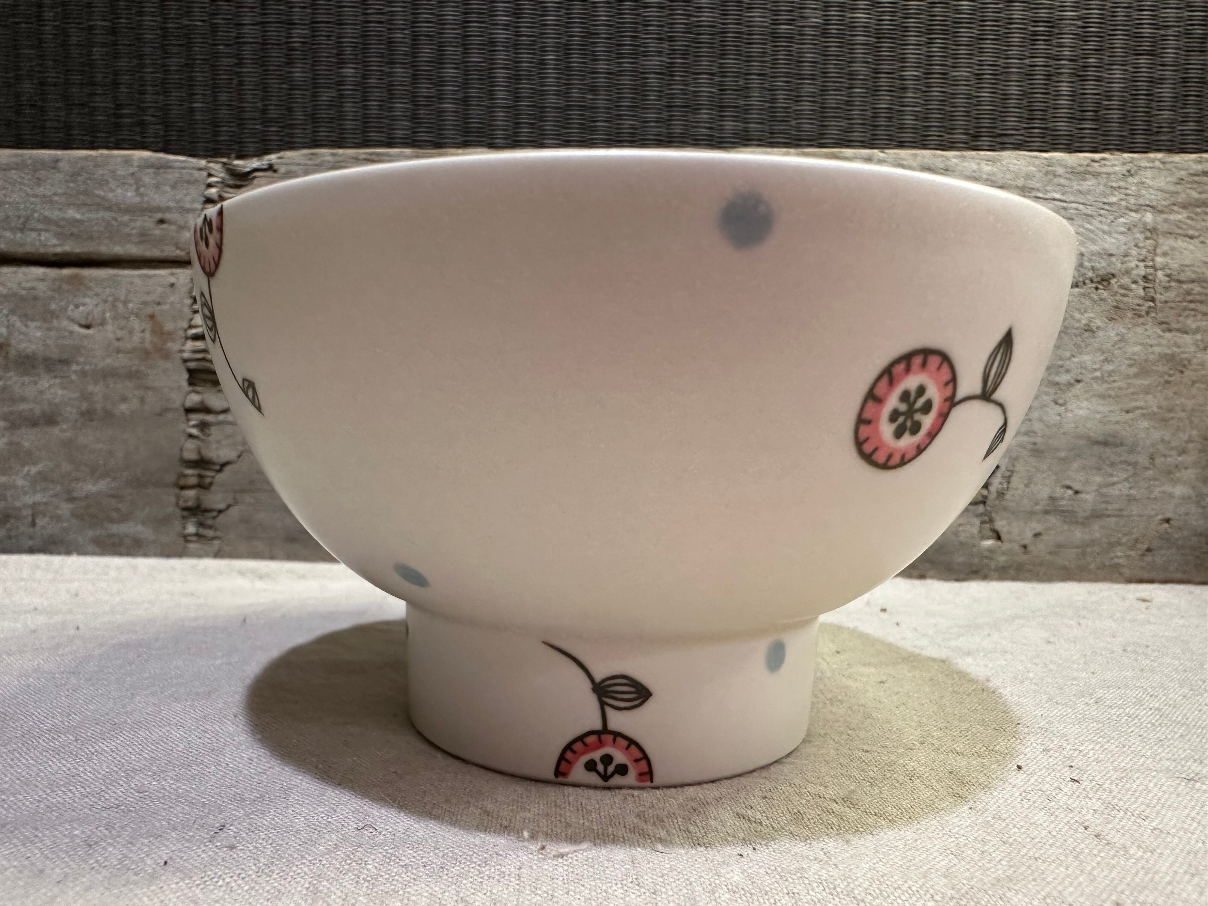 くらわんかとは高台の大きなお碗(飯碗)のことで、愛媛県や長崎県(波佐見焼)で作られていました。船の上で使う安定感の良い形…というイメージが強く、ご飯に限らずおかずや汁物を入れて使ったそうでした。