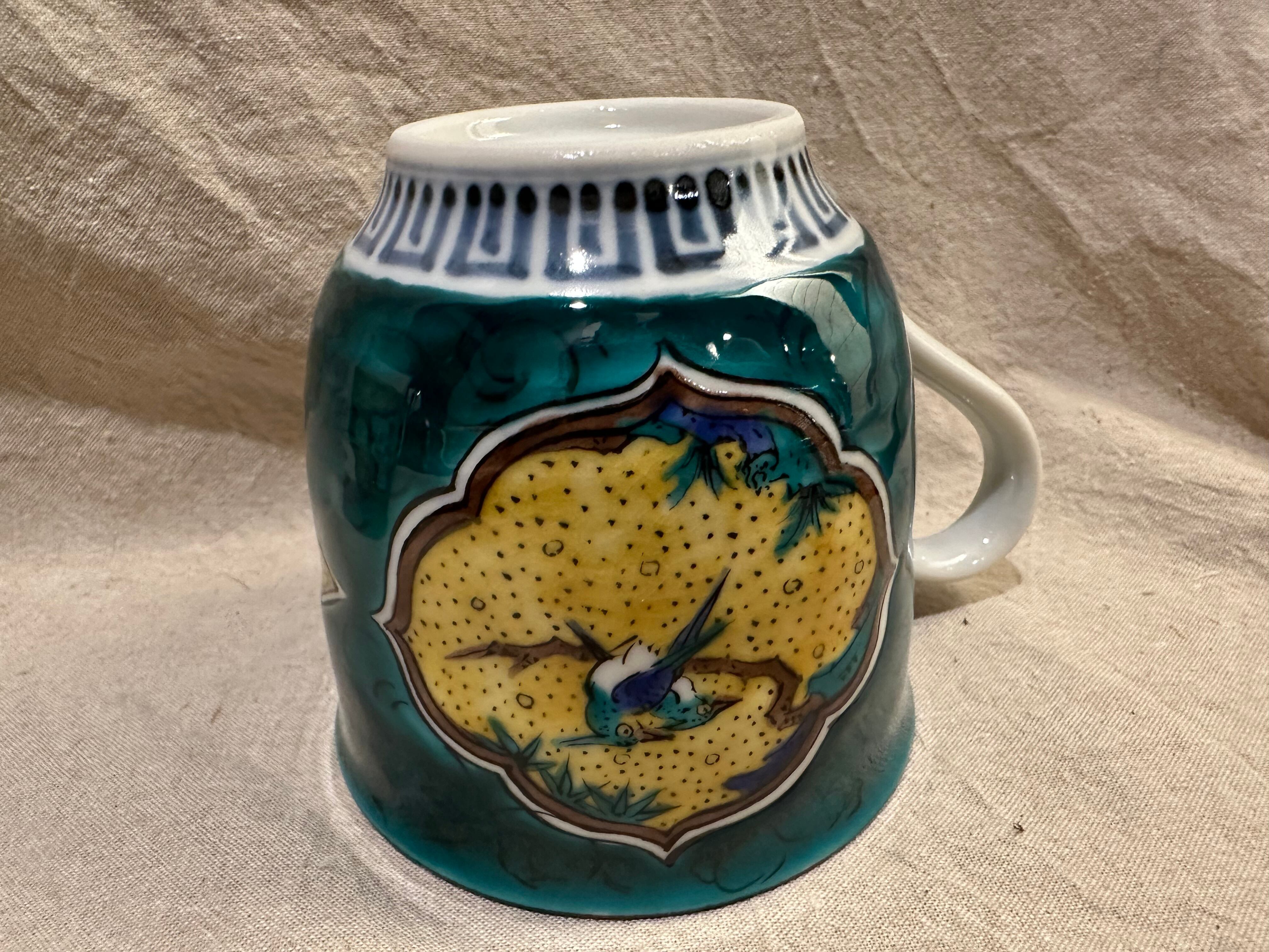 九谷焼 青手古九谷図 マグカップ(黄/青)
