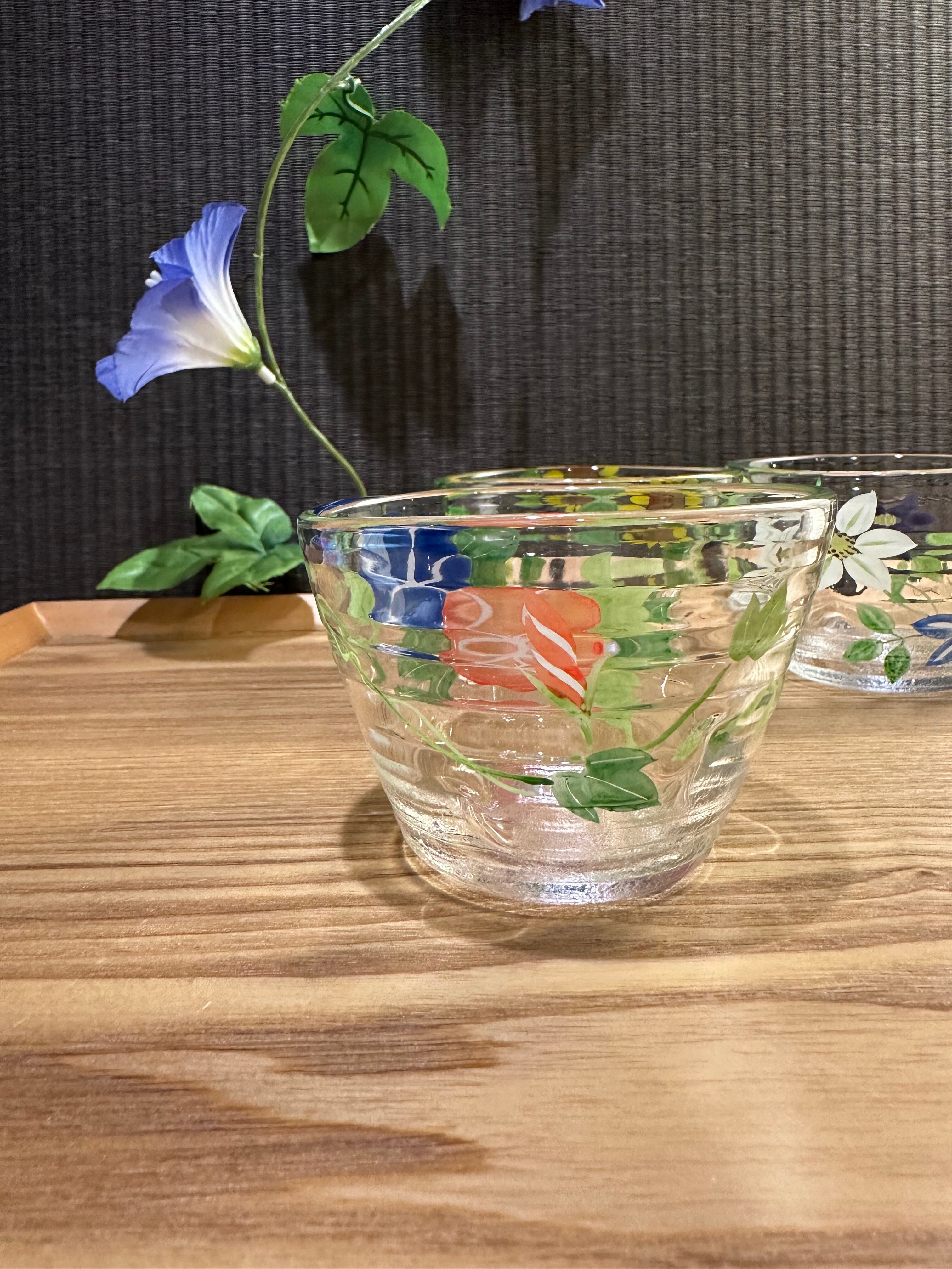 日本の夏のお絵柄がセンスよく描かれた蕎麦猪口。