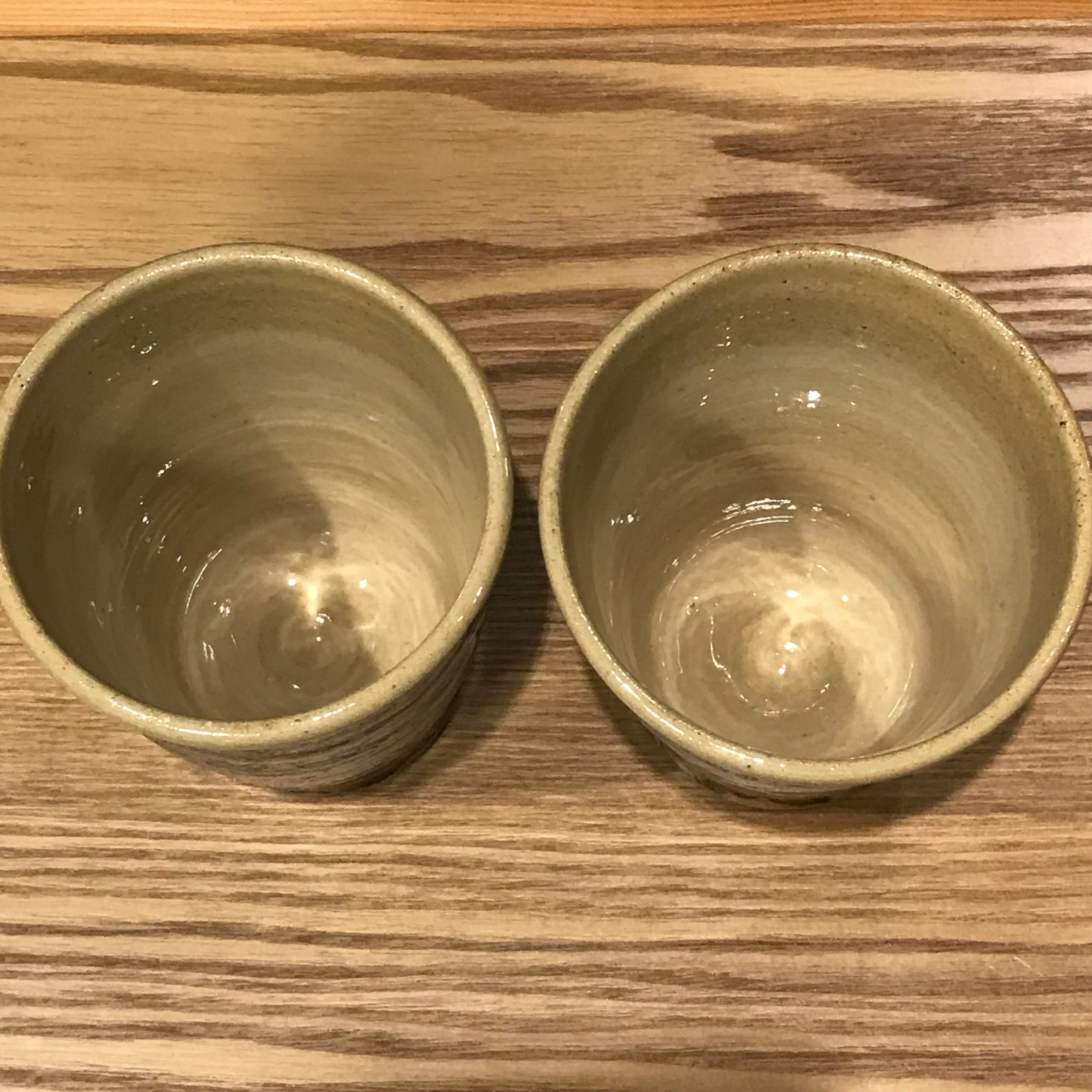 益子焼の伝統色(茶・糠青・白・飴・柿・黒)を基調としたベース地に、チョコペンの様なスポイトの様な容器に粘度を調整した色釉薬を入れてぷっくりとした模様を描いていきます。