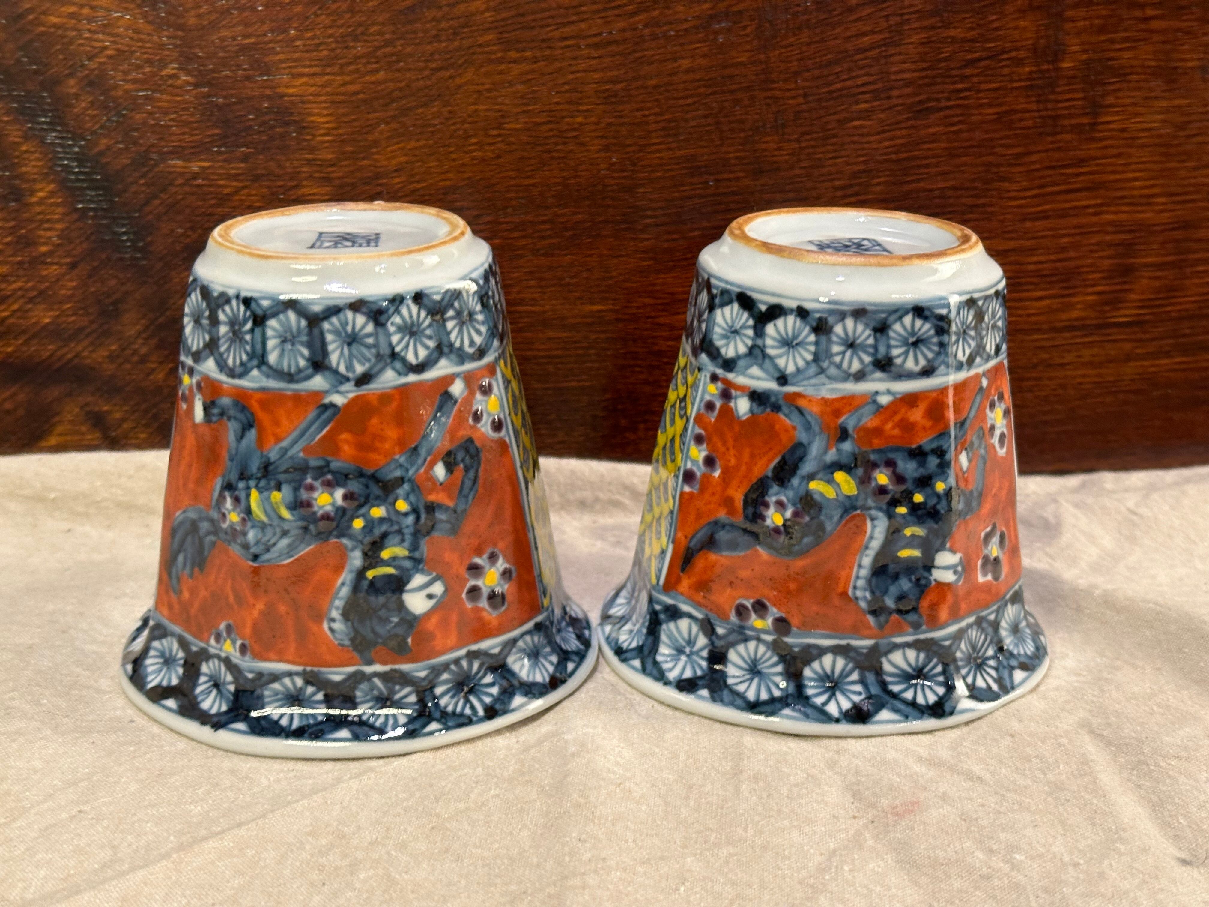 異国情緒漂う馬が駆ける様子に、青海波と七宝柄(配置は2つとも同じです)が左右に黄色で描かれています。力強い筆致ながら、驚くほど軽いそのカタチ。