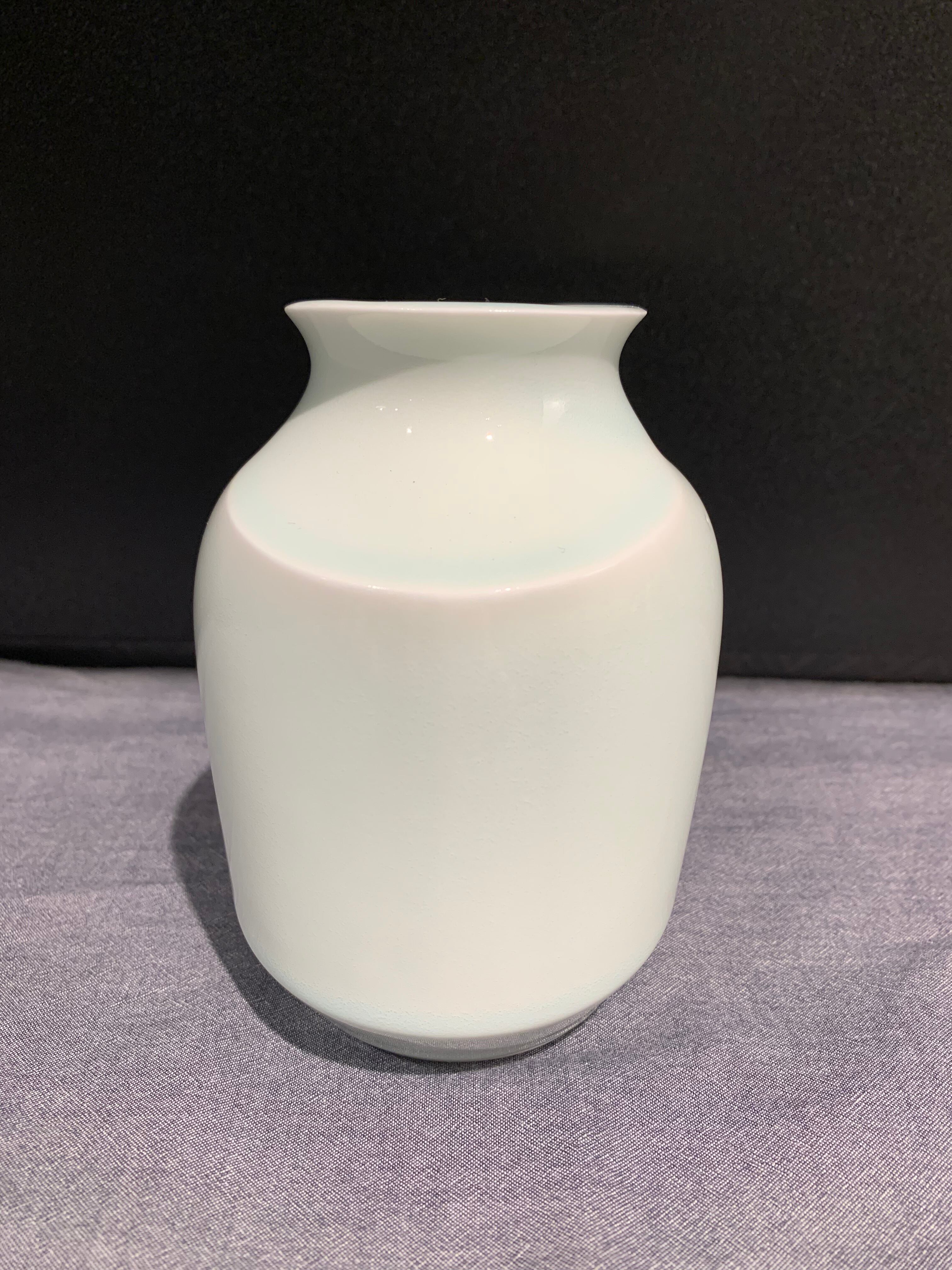 うっすら青白色の貫入がキラキラと美しい軽やかな李さんの作品。