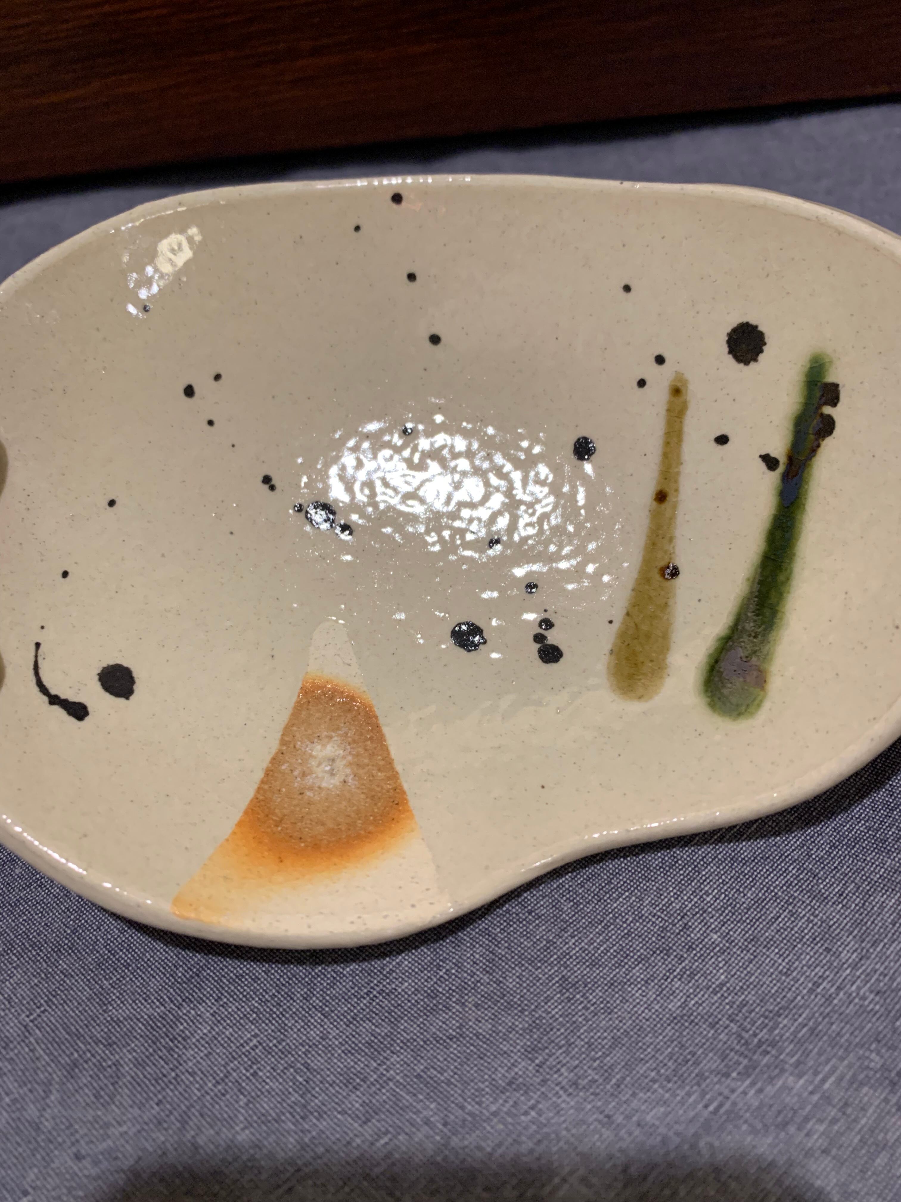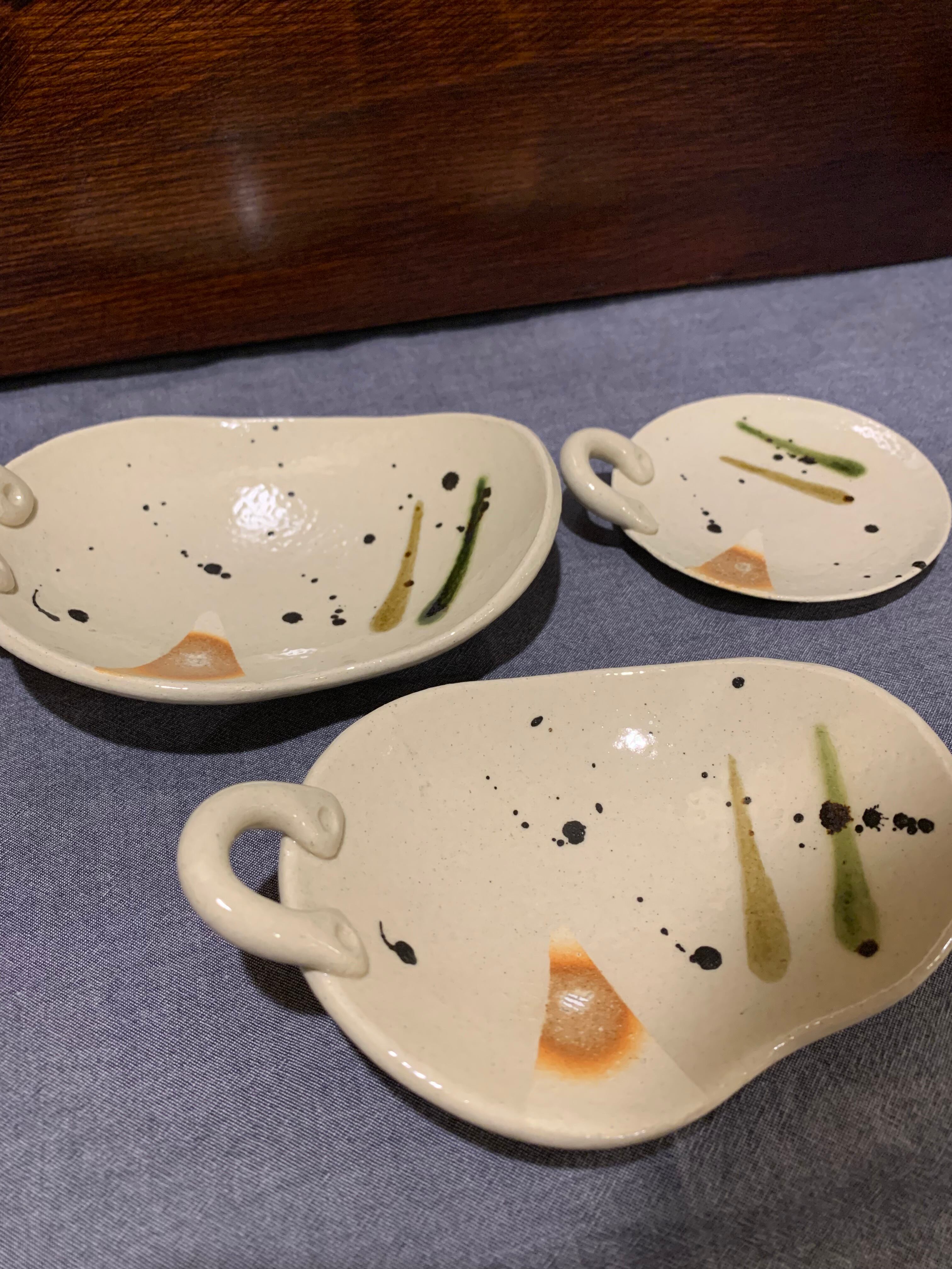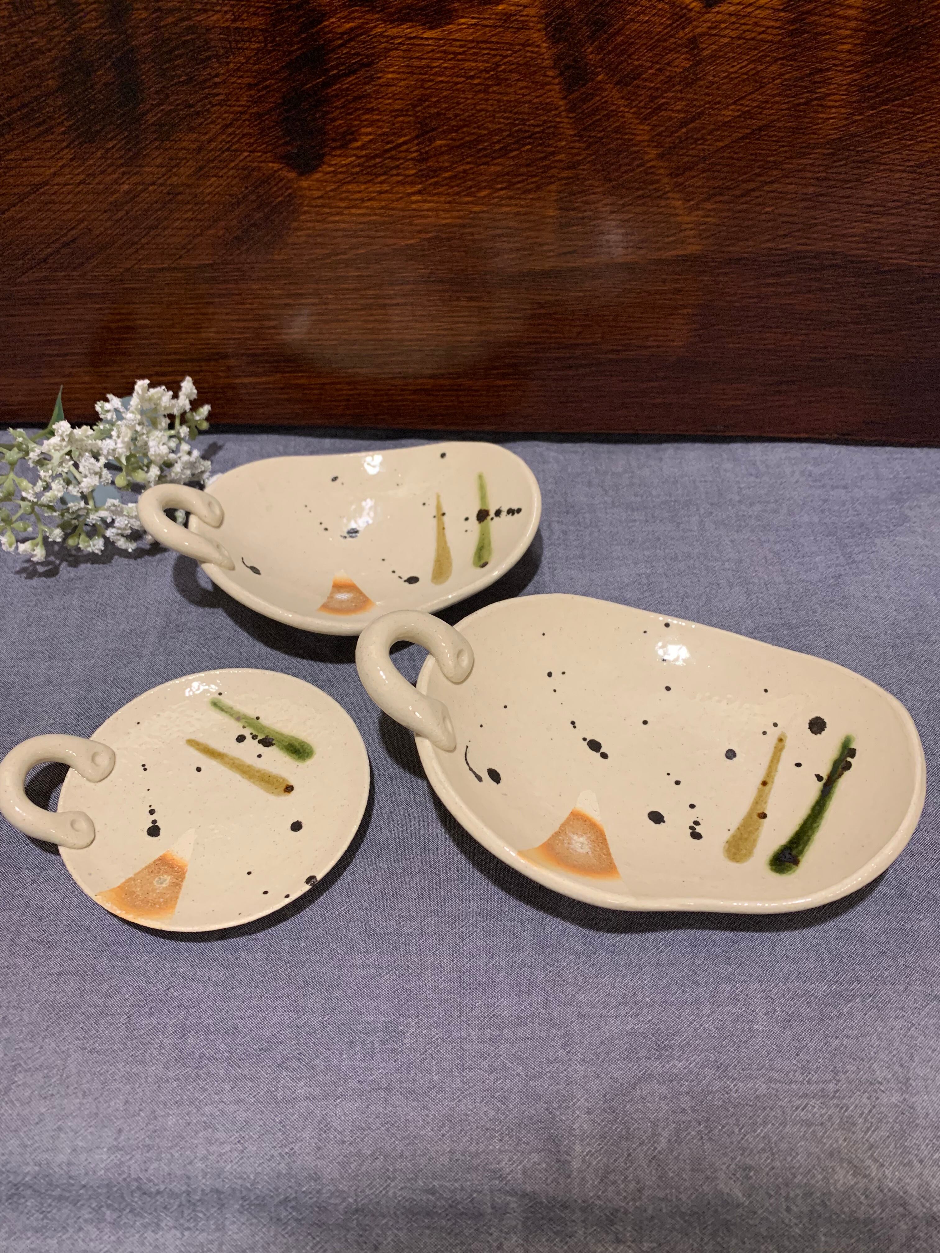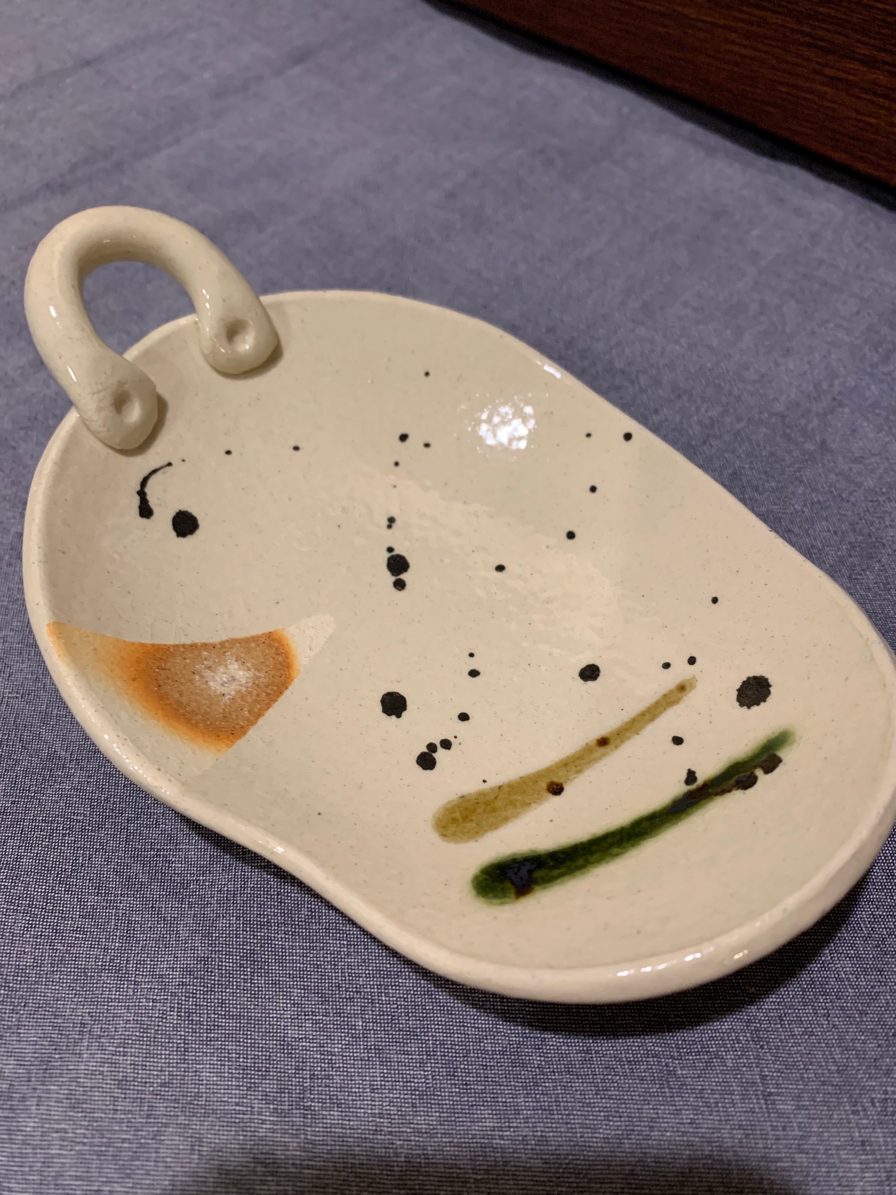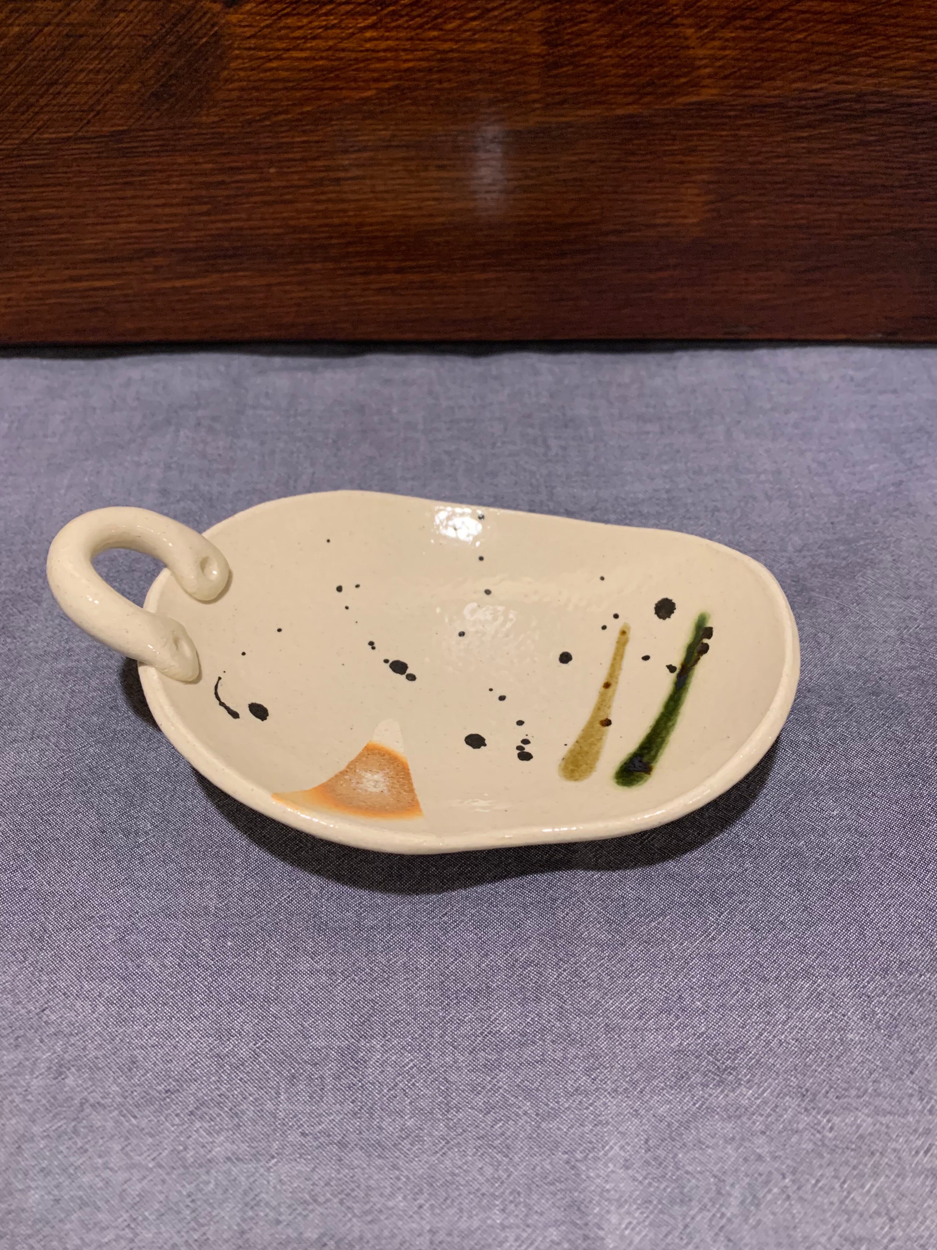 三彩 手つき楕円小皿(大)