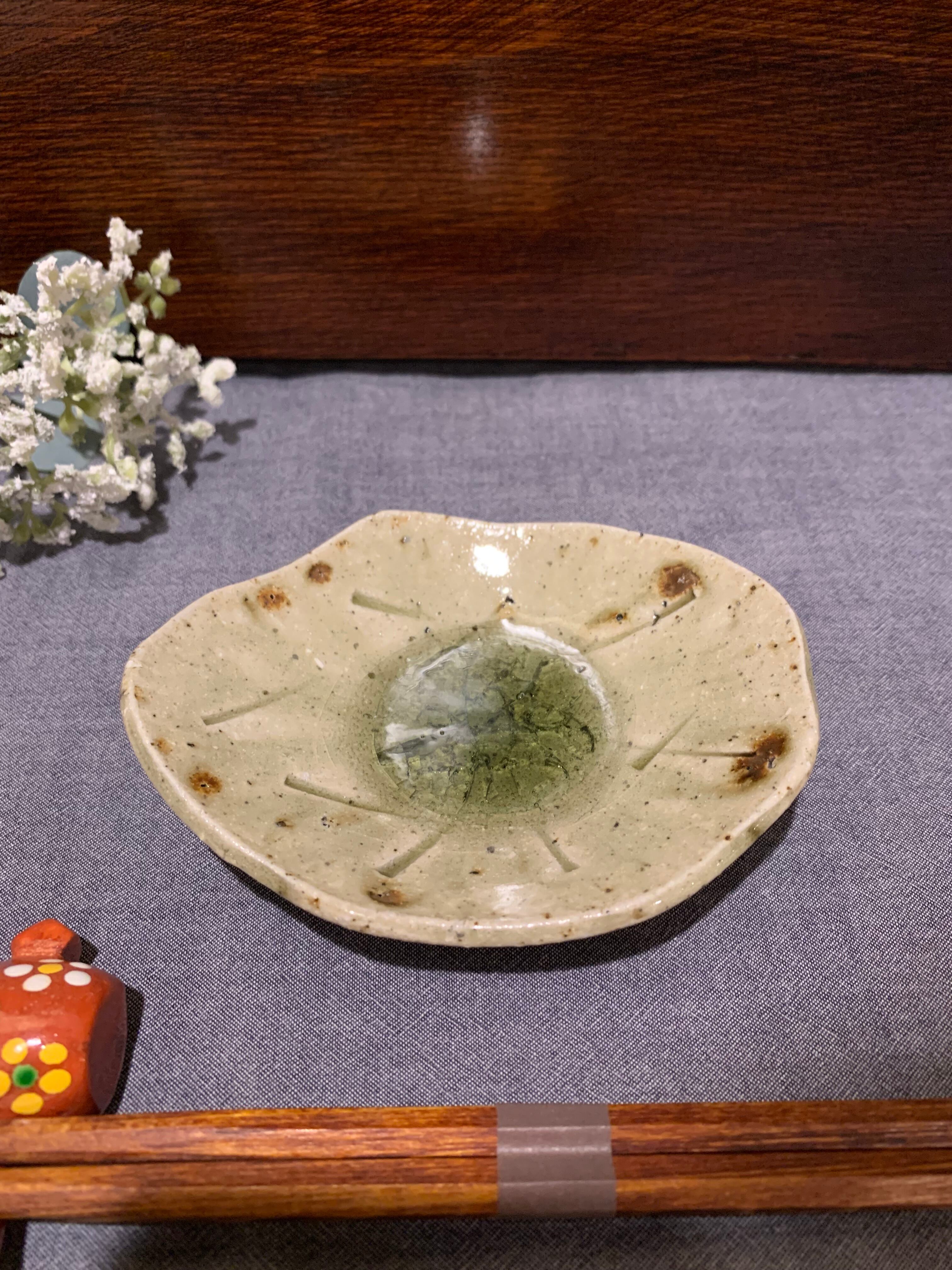 薄造りの上品な形に、灰釉×鉄分の豪快な色合いに目を奪われる人気作品です。