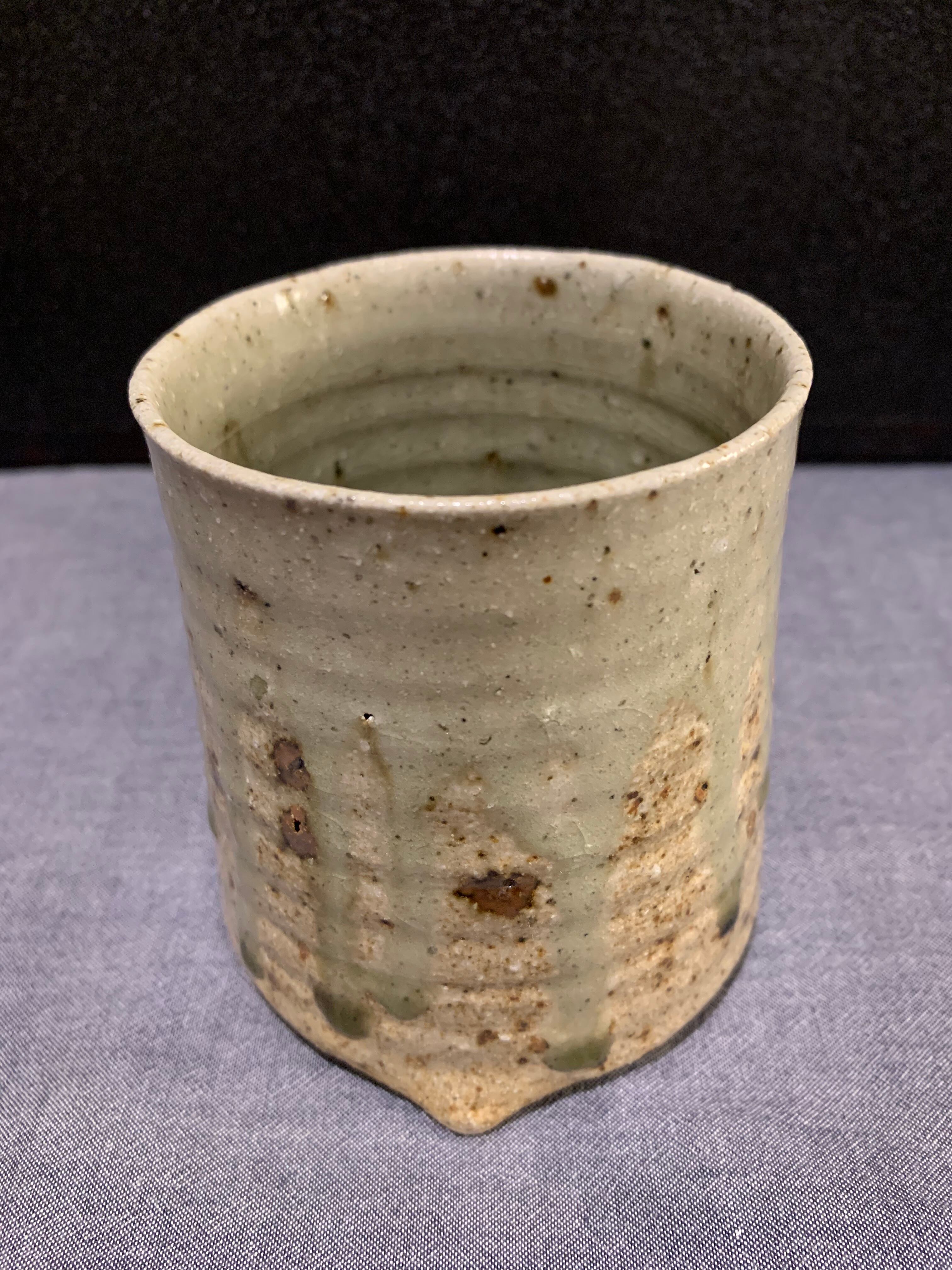 三つ足付のデザインに灰釉×鉄分の豪快な色合いに目を奪われる作品。